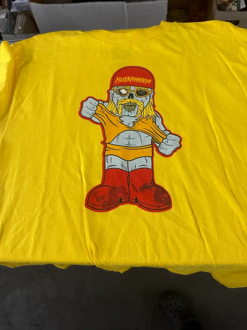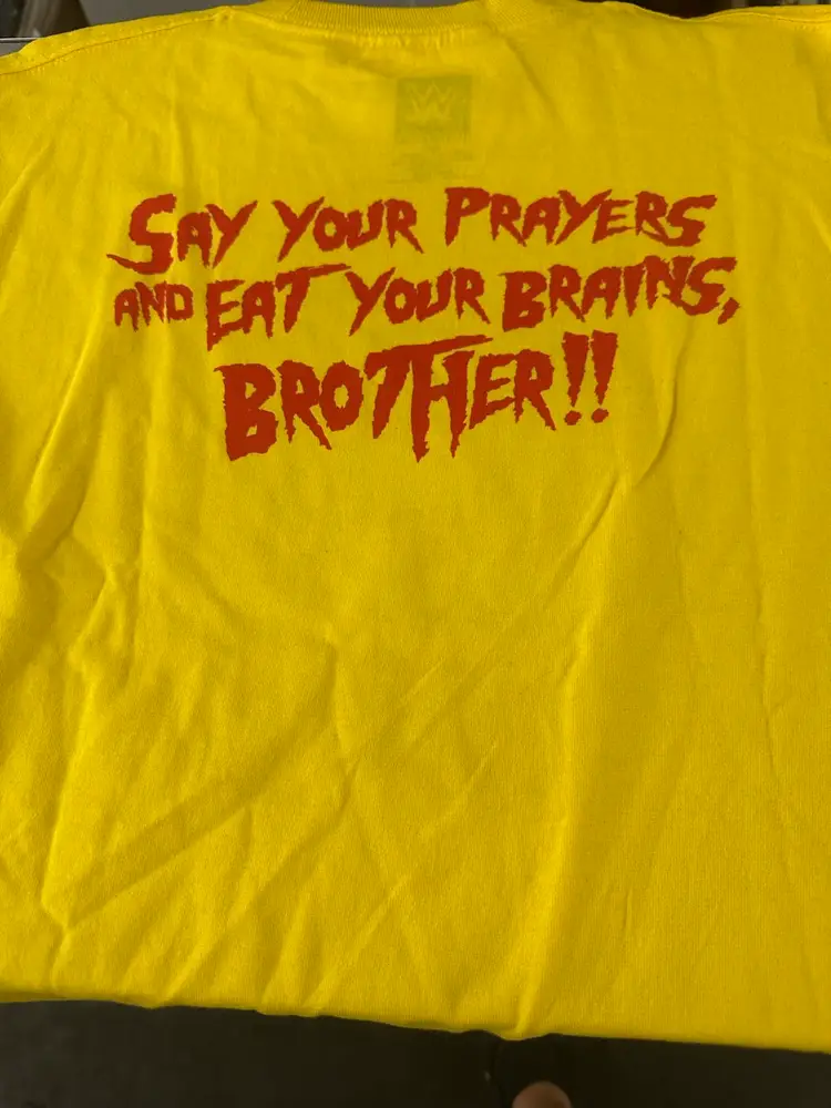 WWE HULK HOGAN HULKAMANIA Yellow PRAYERS and BRAINS HALLOWEEN T-Shirt Size M