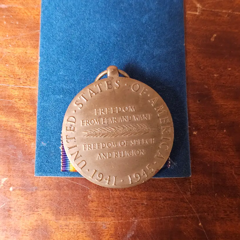 Reverse (back): Inscribed “United States of America – 1941–1945” with the Four Freedoms: Freedom from Fear and Want, Freedom of Speech and Religion.