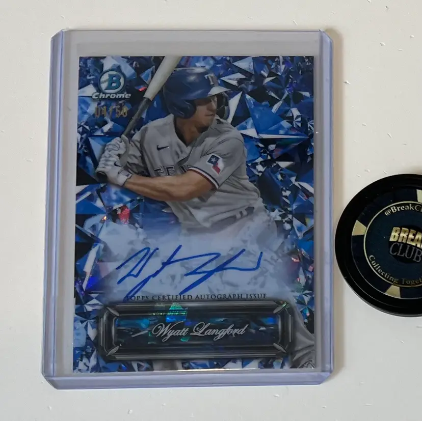 2024 Bowman Chrome Sapphire numbered prospect on card auto. Additional photos available upon request $8 shipping tracked and insured in box