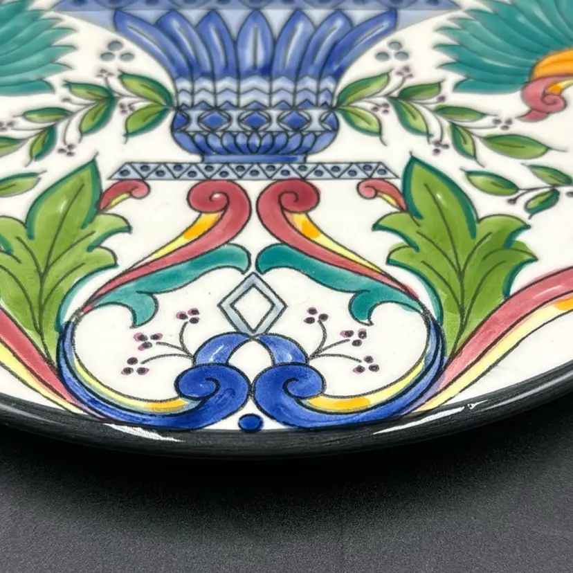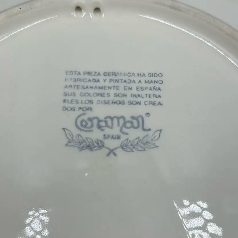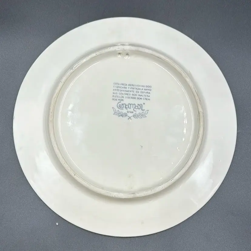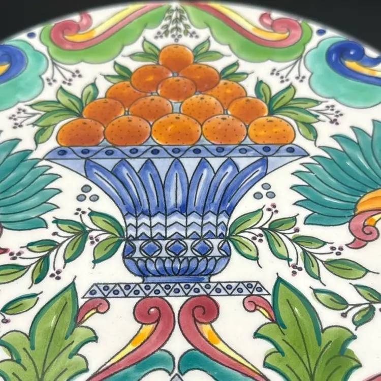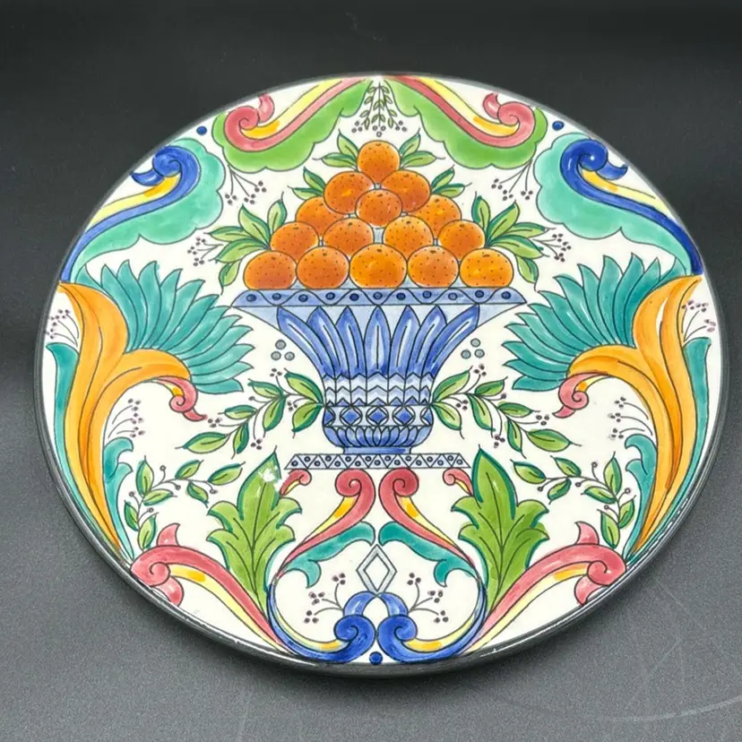 Vibrant handprinted Ceramar plate. In perfect condition. Measures 9" across. Bright and cheerful!