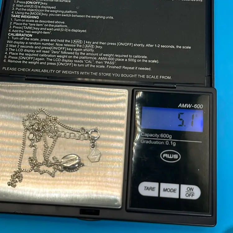 “X” Coffee Bean? 925 Silver Necklace 19”8” 5.1 Grams