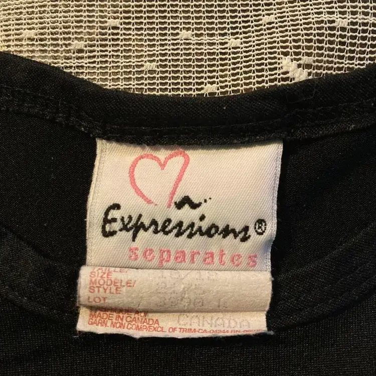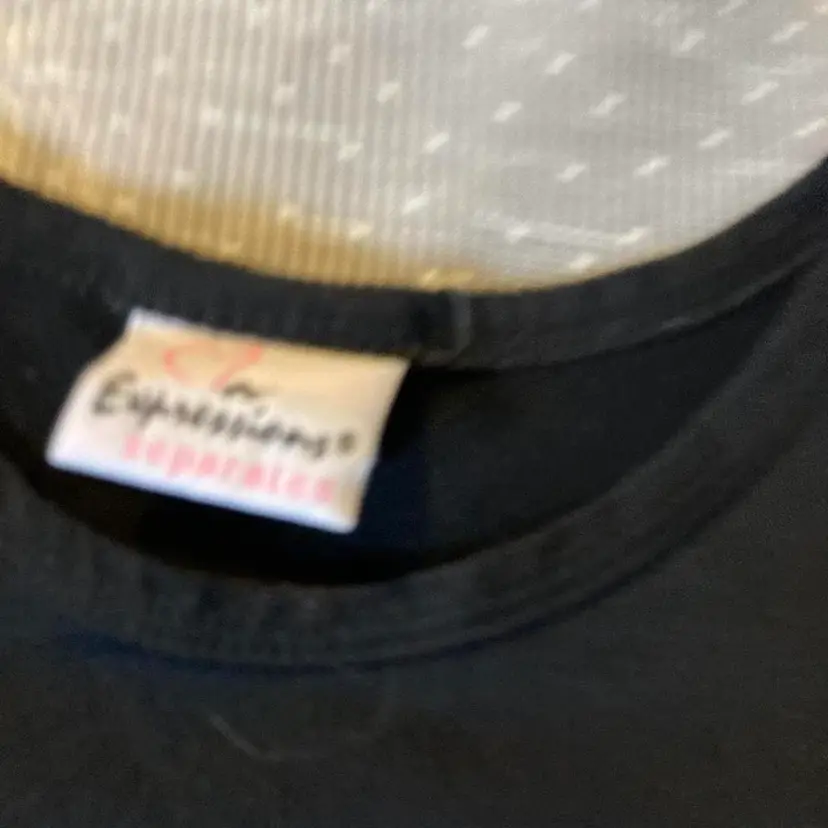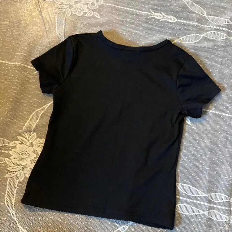 Y2K baby tee Black and sparkly SWEET baby tee Girls size 10/12, fits woman small Okay used condition with holes in the armpits, shown in photos Super cute and clingy fit #babytee #y2kshirt #girlyshirts