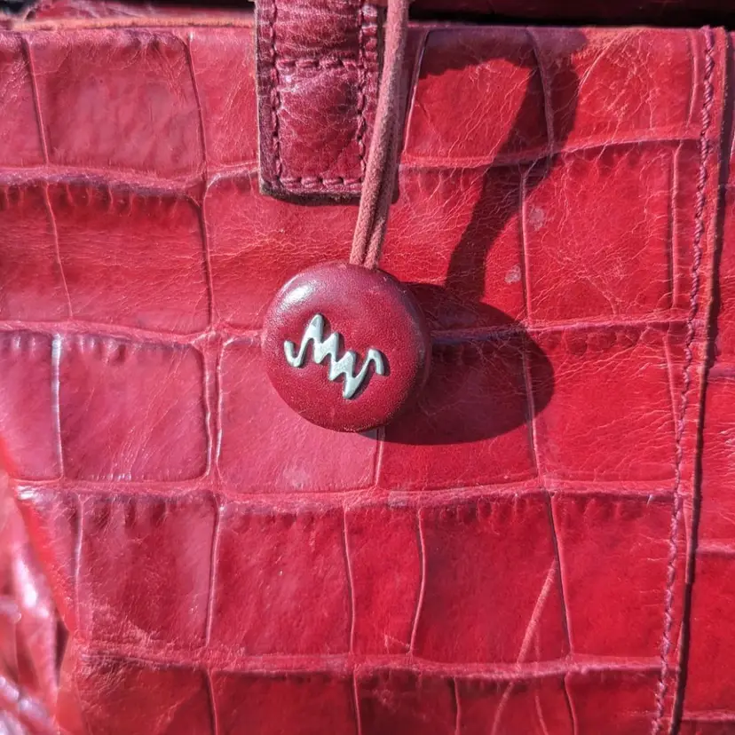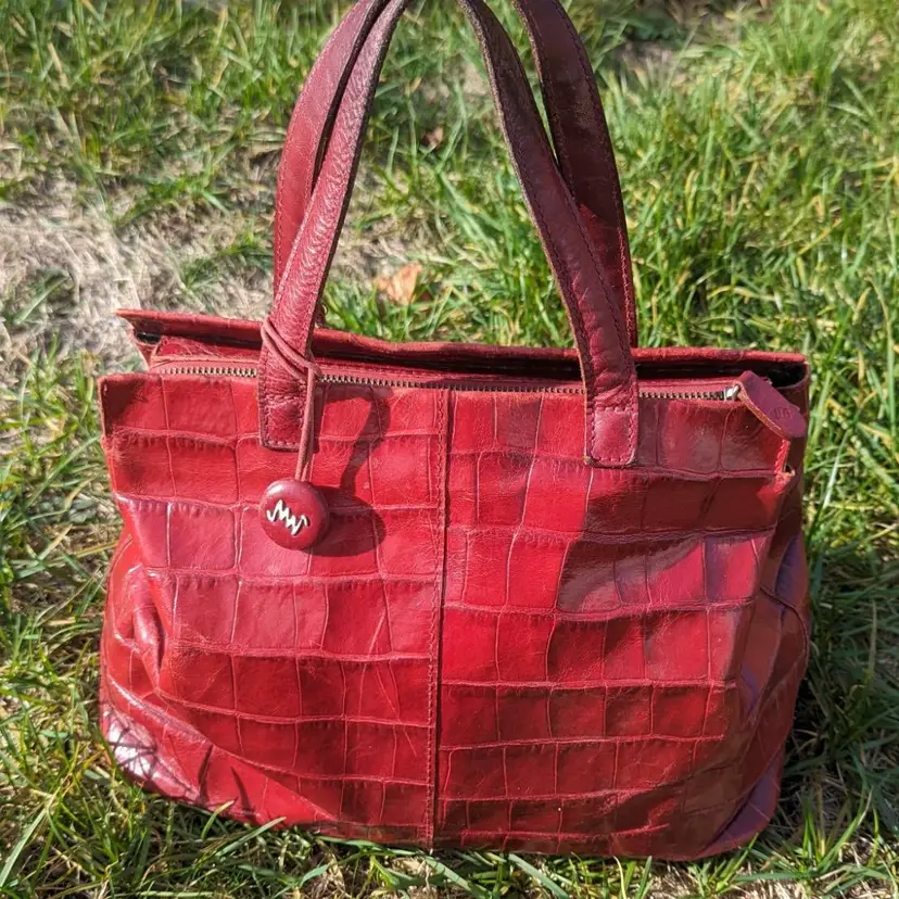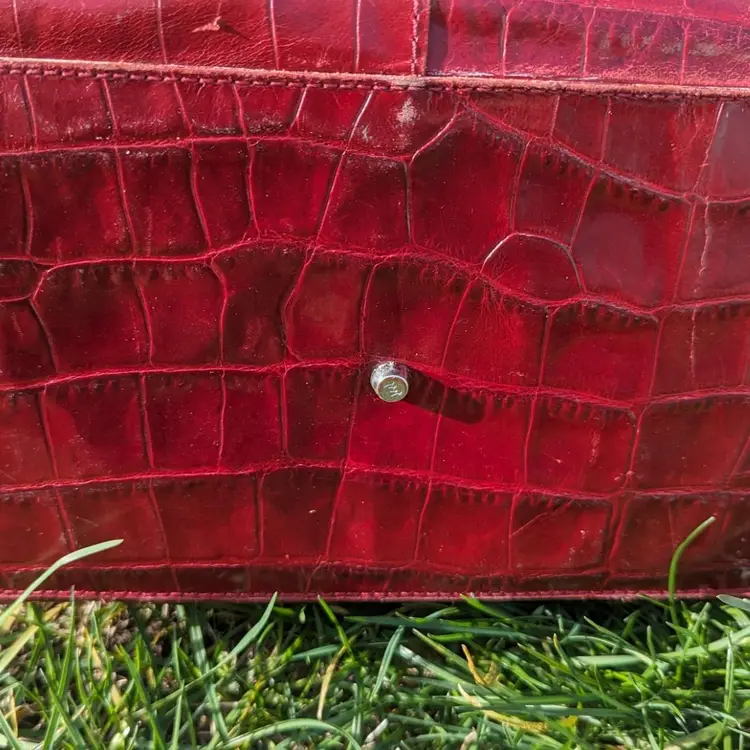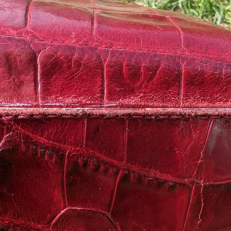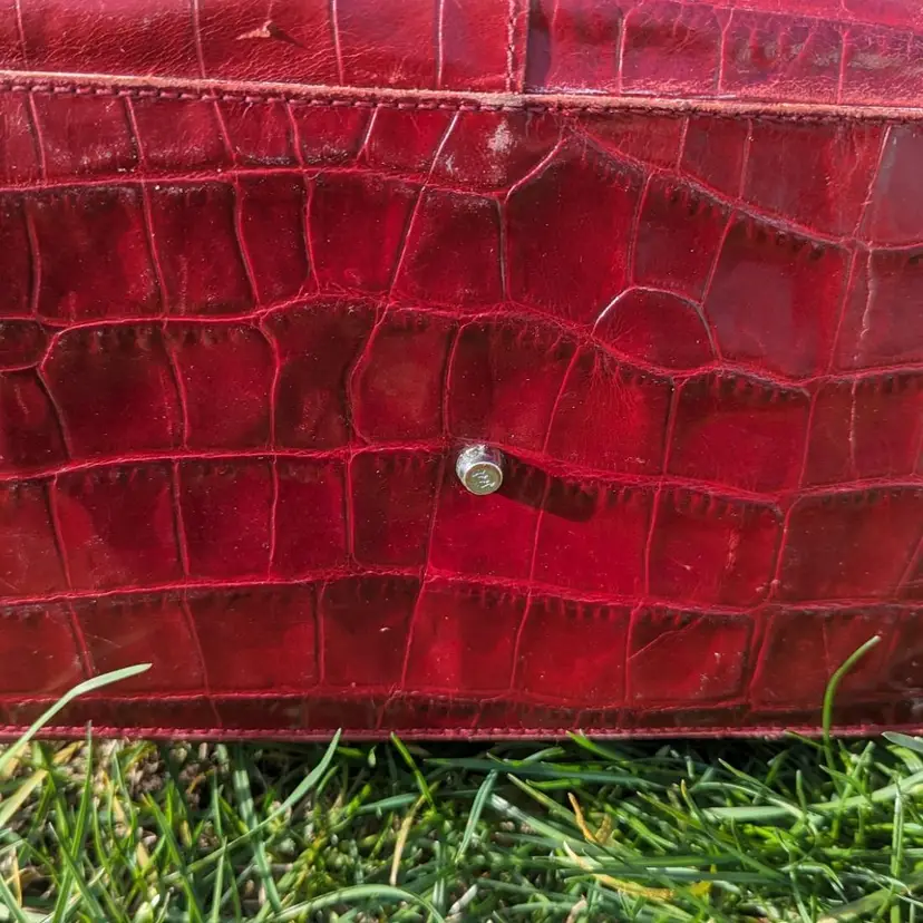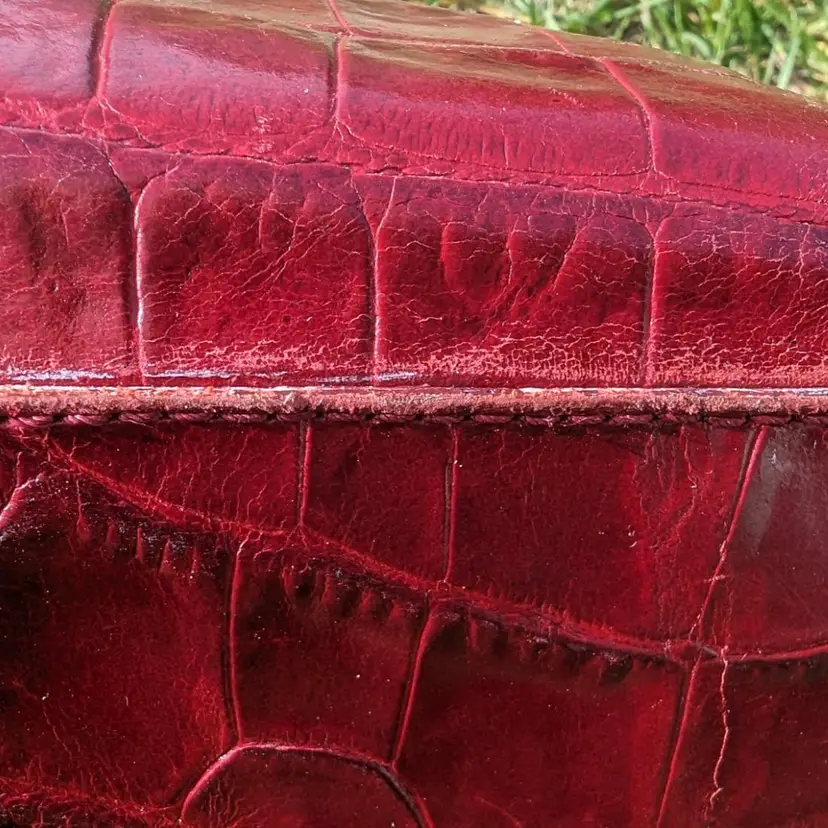 Cherry Red Croc Leather, handheld beauty. Minor wear as photographed Great overall condition 10" ร 14" ร 6" $77.00