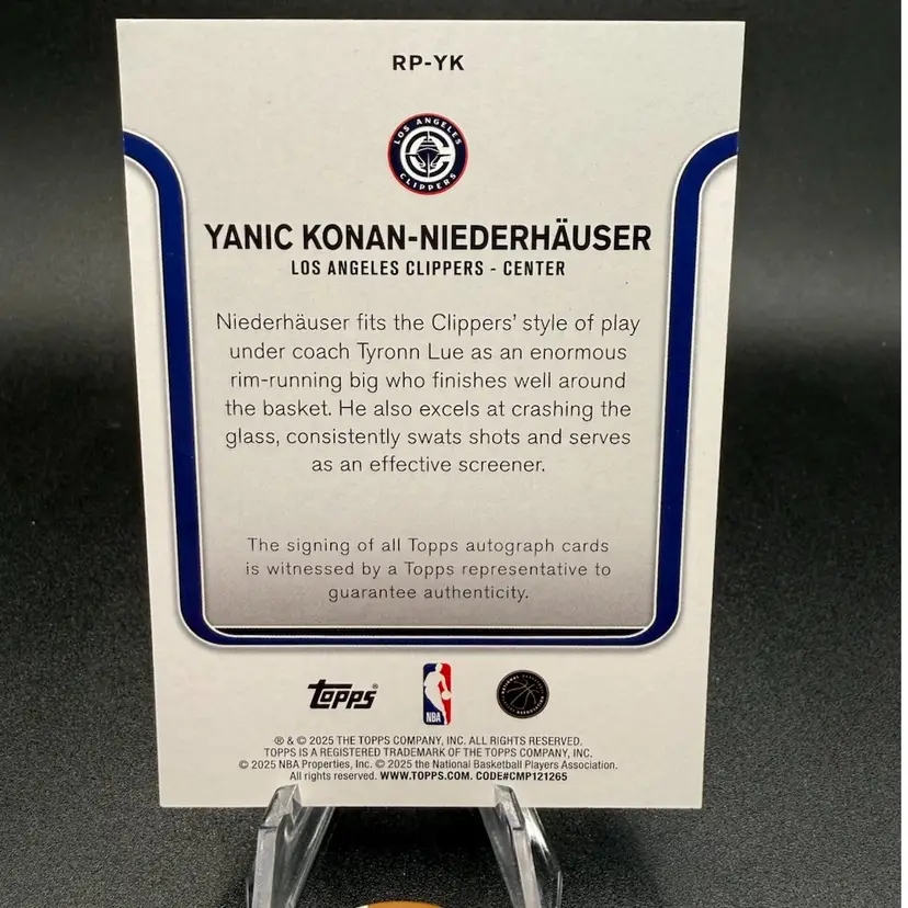 This is an on card auto of Yanic Konan-Niederhauser. This is the more rare Rookie photo Shoot auto. One corner has dent/whitening.