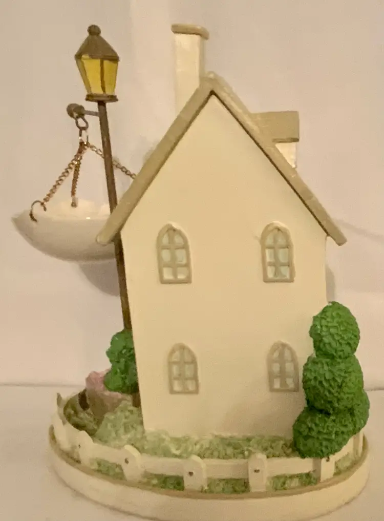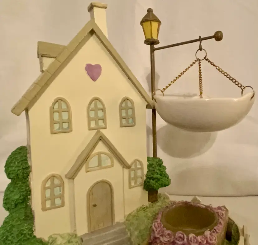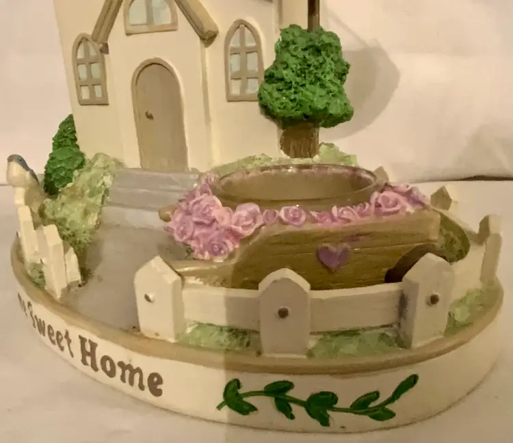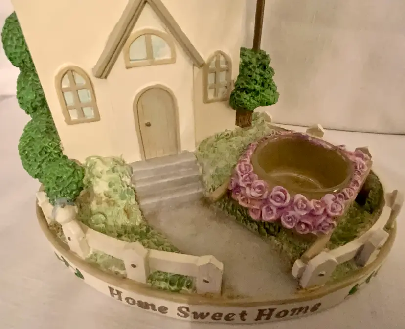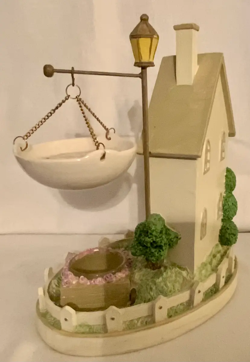 Yankee Candle Cottage “Home Sweet Home” hanging tart warmer, complete with candle. 3D Cottage with floral yard, made of resin. Retired 9” tall item, no chips or cracks. Prefer for any room or occasion.