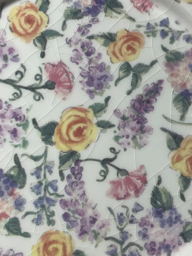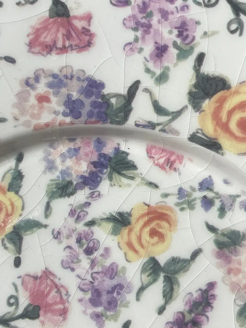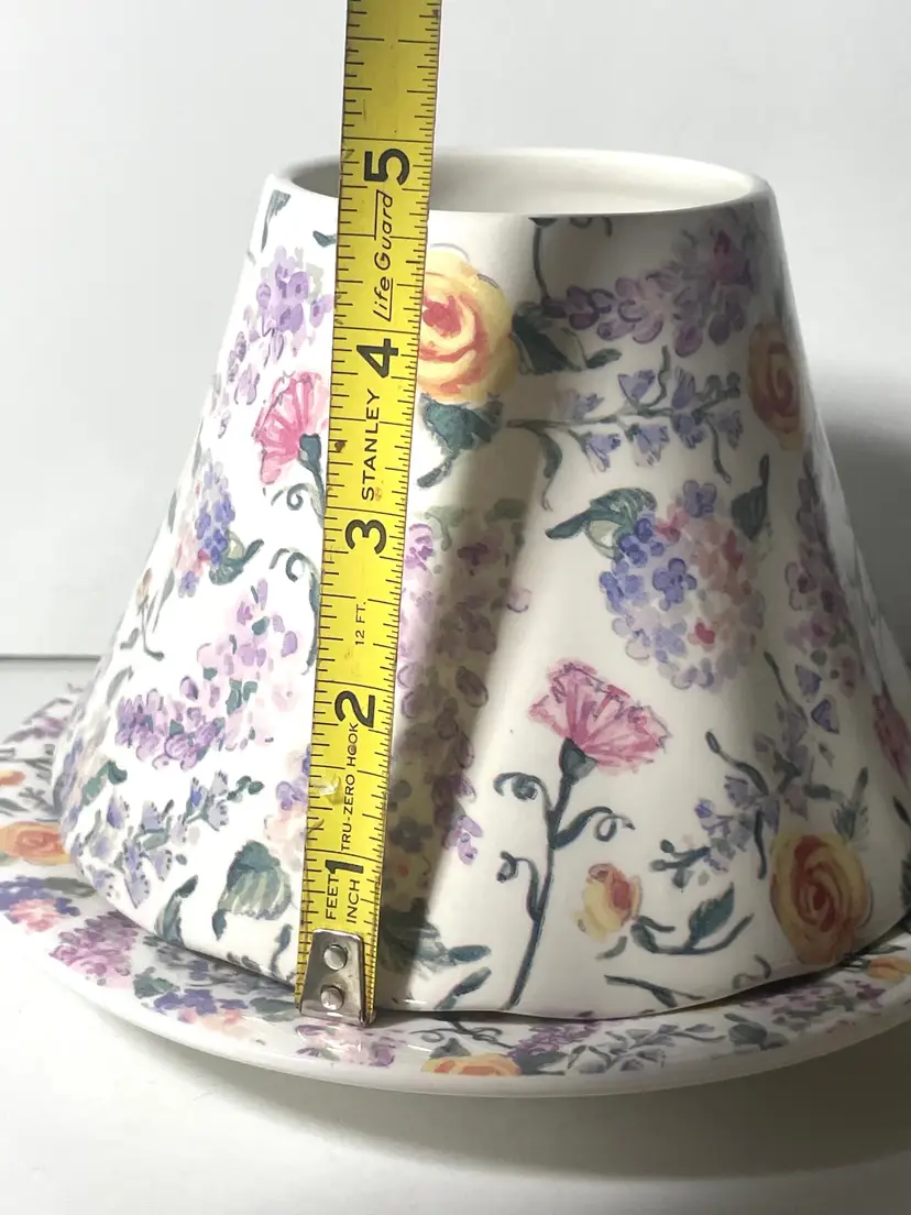 Beautiful vintage find! The shade is in excellent condition. The dish has a lot of crazing as seen in the photos. I know some people don’t mind crazing and some people do. I included the dish with this sale so you, the buyer can deside. Most of these I’ve seen on line do not include the dish so it is an unusual find to have them available together. Please view all pictures as they help with this description. As always, thank you for visiting my store!!!