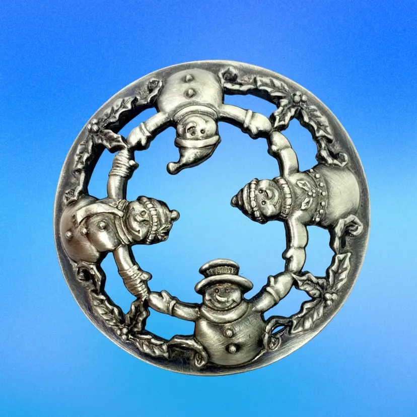This is a Yankee Candle 2007 Christmas Metal Snowmen Illuma Lid Topper. Perfect for Yankee Candle large and medium jars, this Illuma Lid fits snugly on top of your jar candle and helps the candle burn evenly to help your candle last longer.