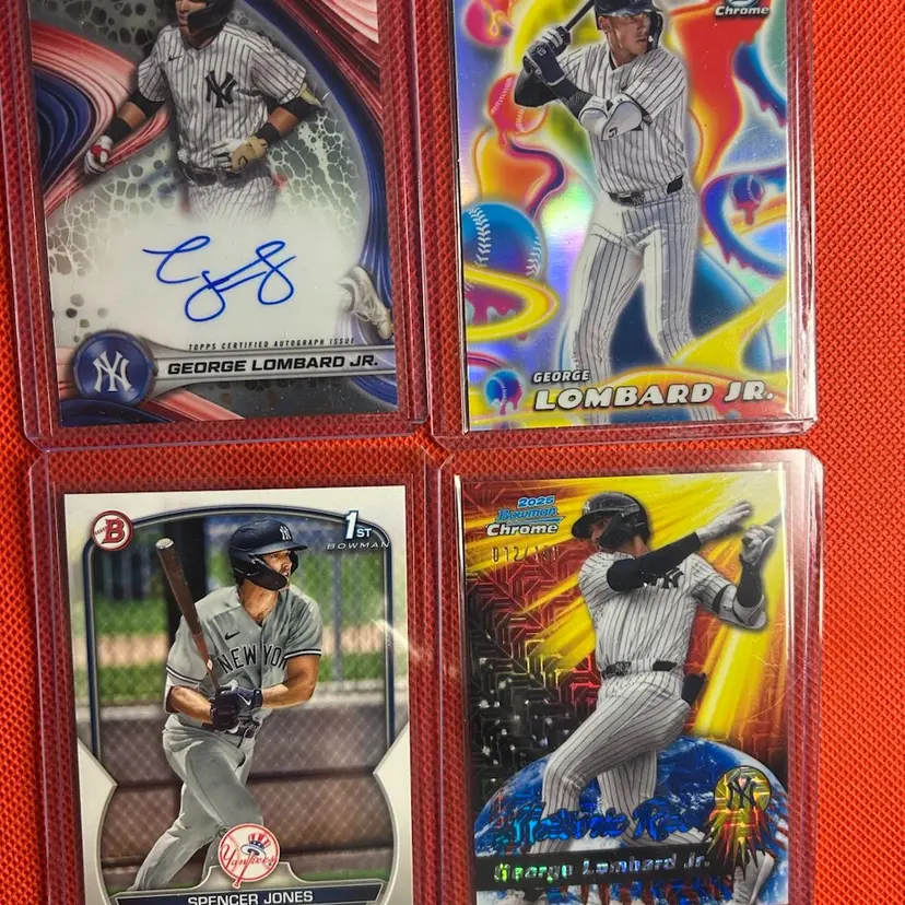 Includes George Lombard bowman’s best auto; bowman chrome meteoric rise mojo /150; melt mashers. Also Spencer Jones bowman paper 1st