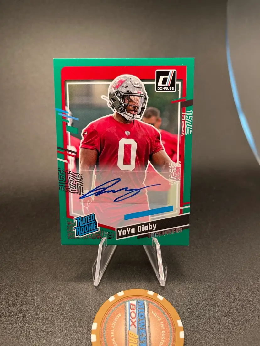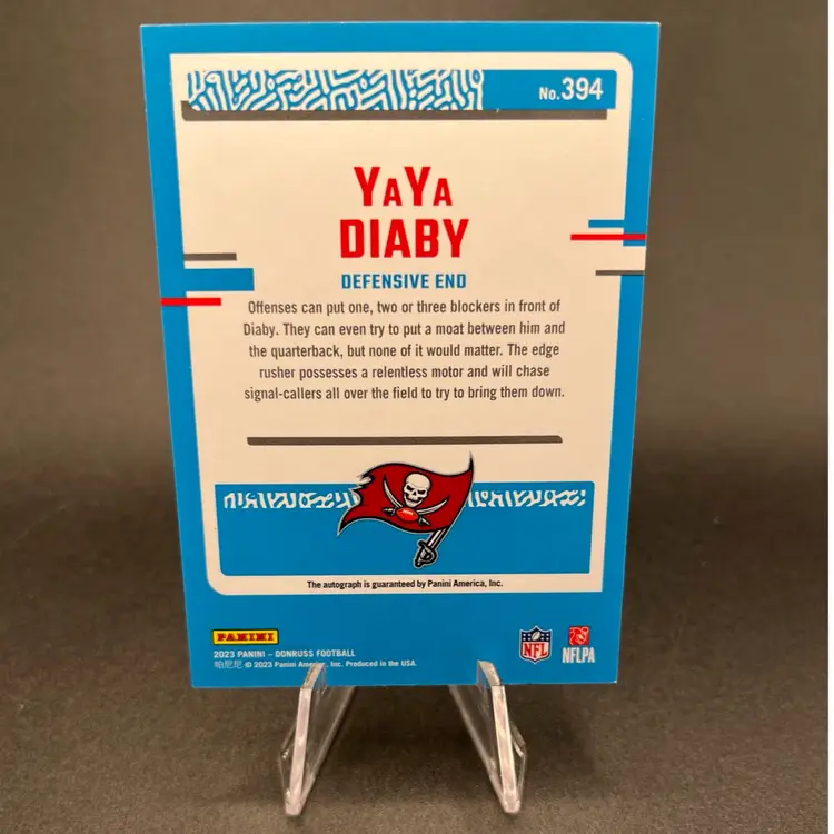 2023 Donruss YaYa Diaby RC auto. Couple corners showing white tips. Tampa Bay Buccaneers.
