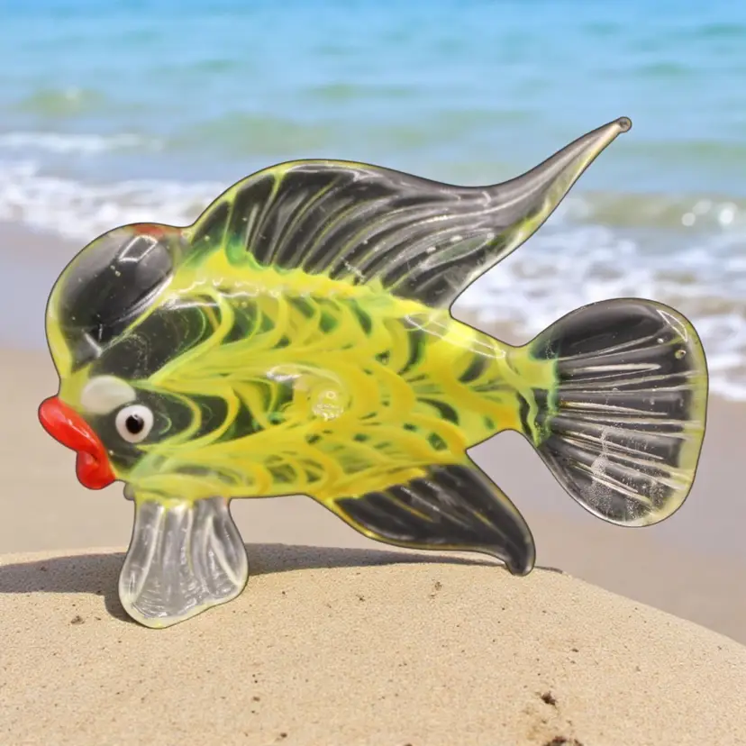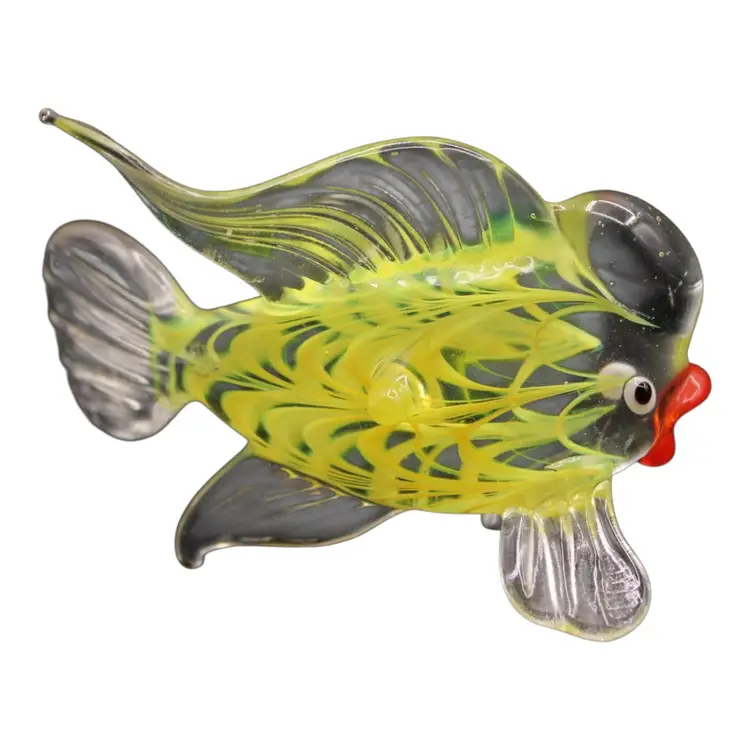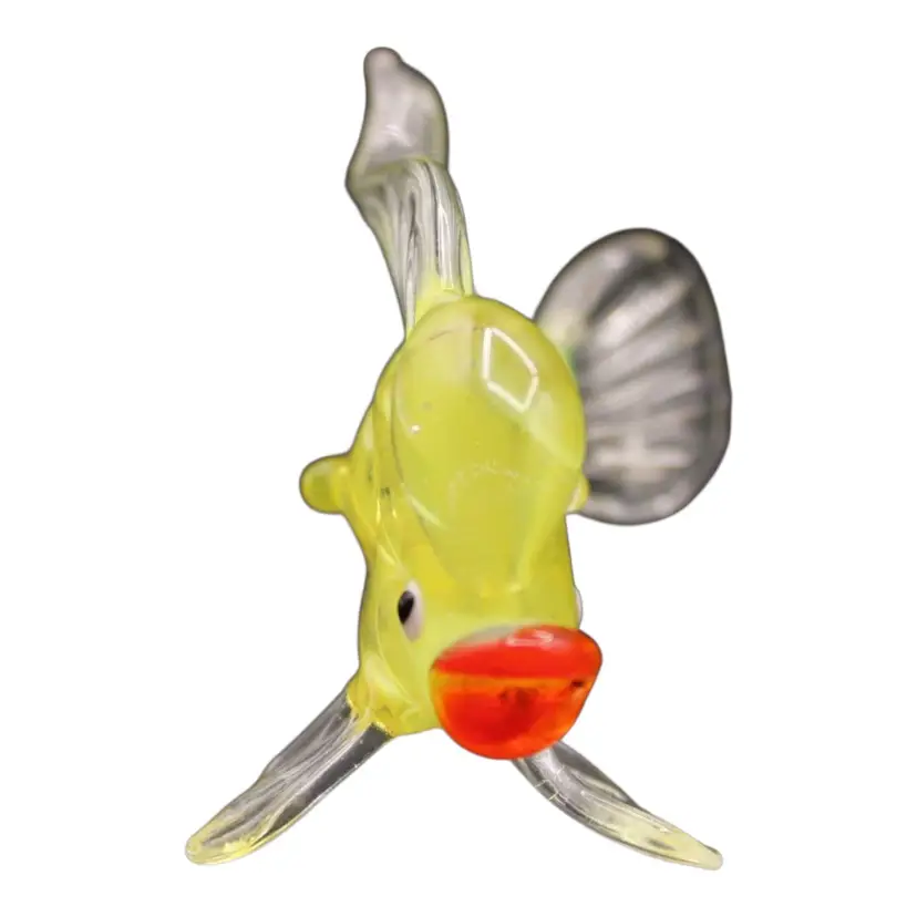 Yellow Art Glass Koi Fish Figurine 2” Tall. It measures 3” x 1 1/2”. No chips or cracks.