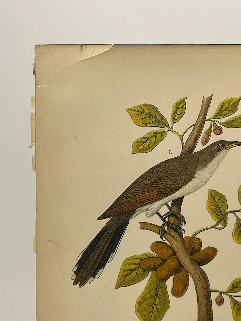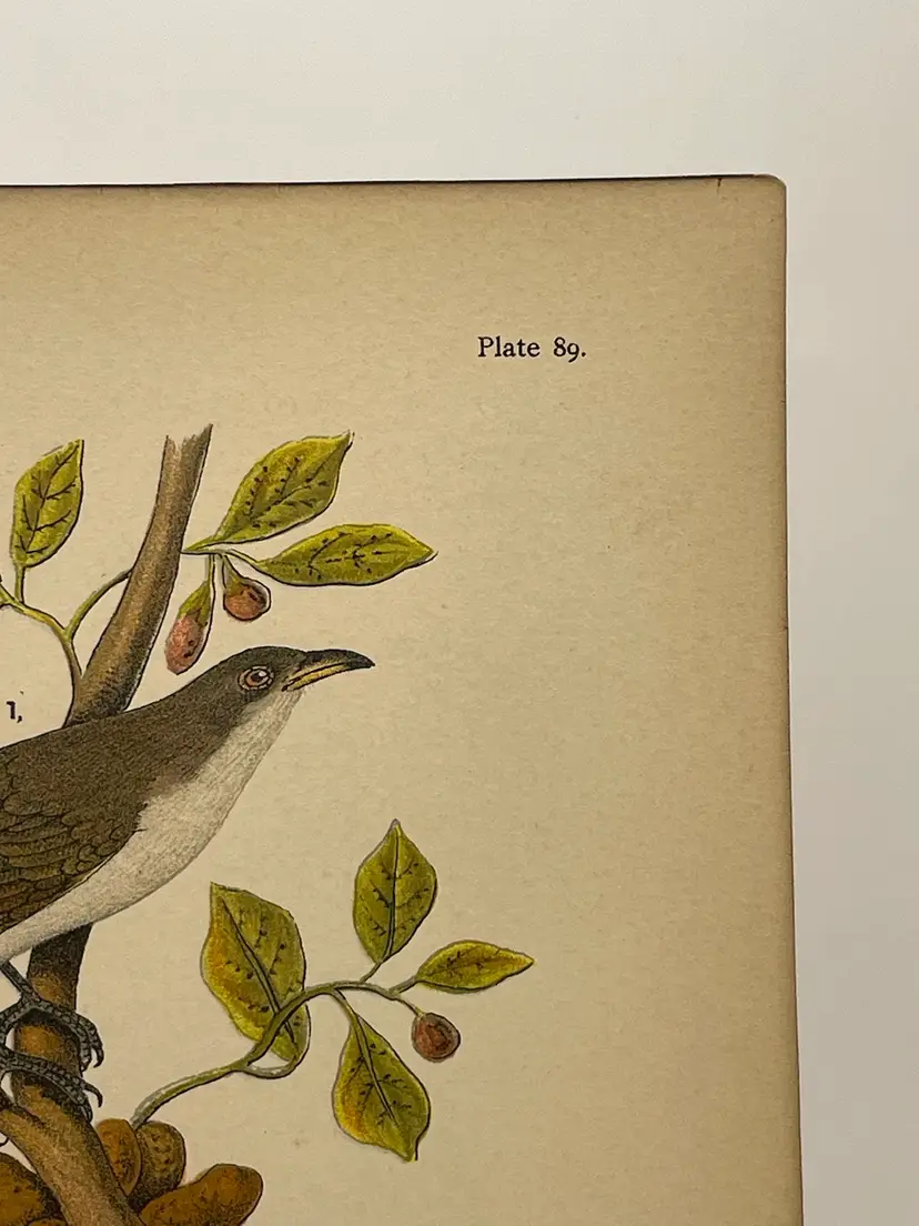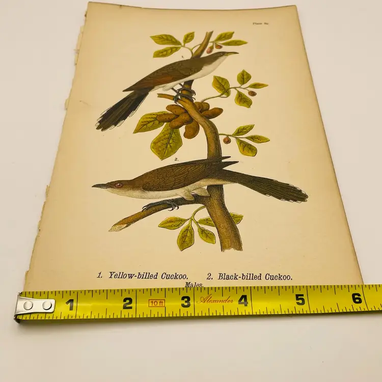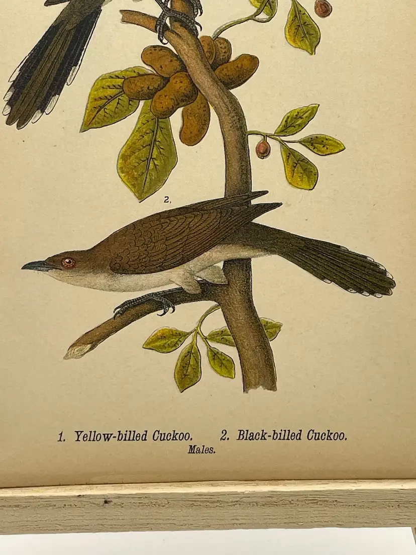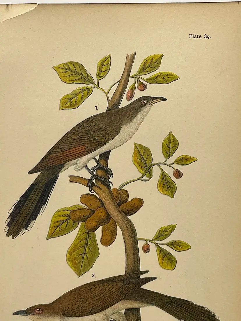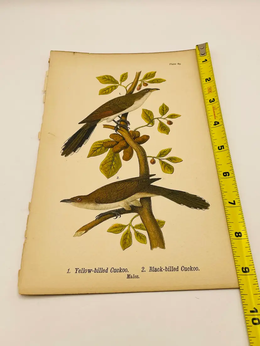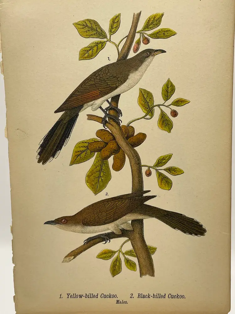 “Yellow-billed Cuckoo”/“Black-billed Cuckoo”, Males, c. 1890 Color Plate Engraving, Plate 89, From An Antique Book Please see pictures for measurements.