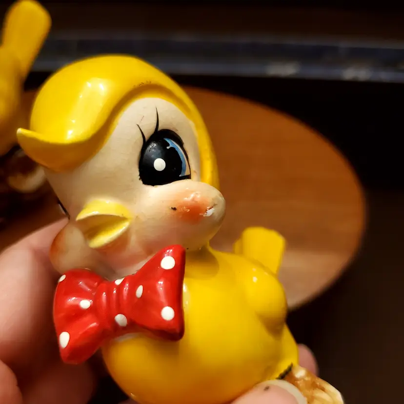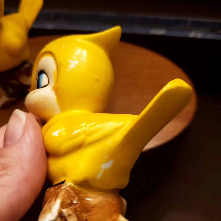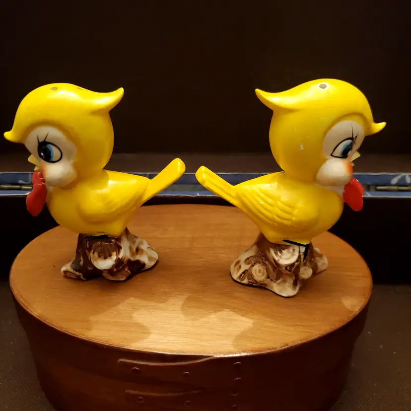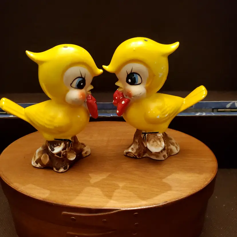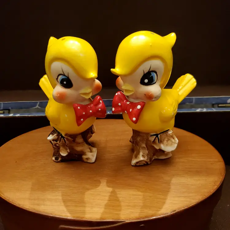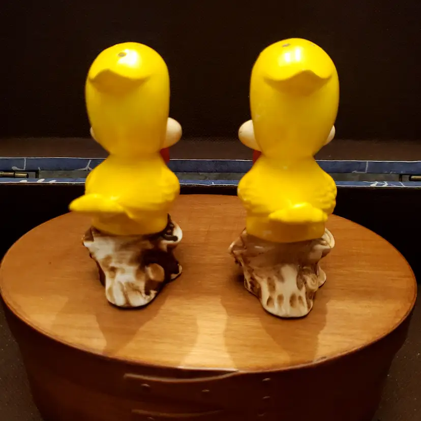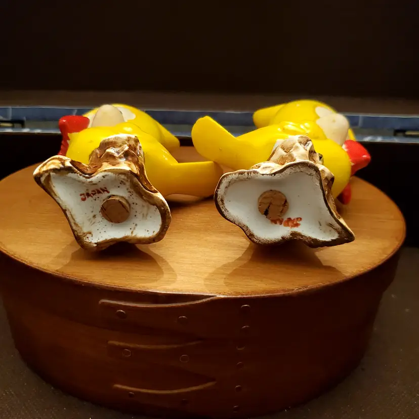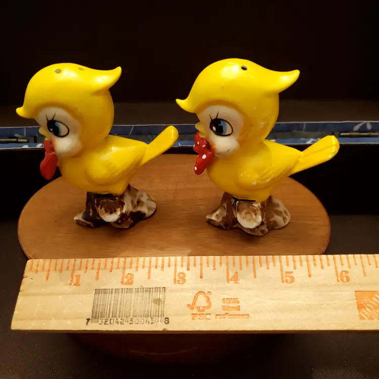 This is an adorable vintage set of ceramic salt and pepper shakers. Made in Japan. No chips or cracks. Some paint loss or scuffs. Please review all photos closely. Approximate measurements in photos.