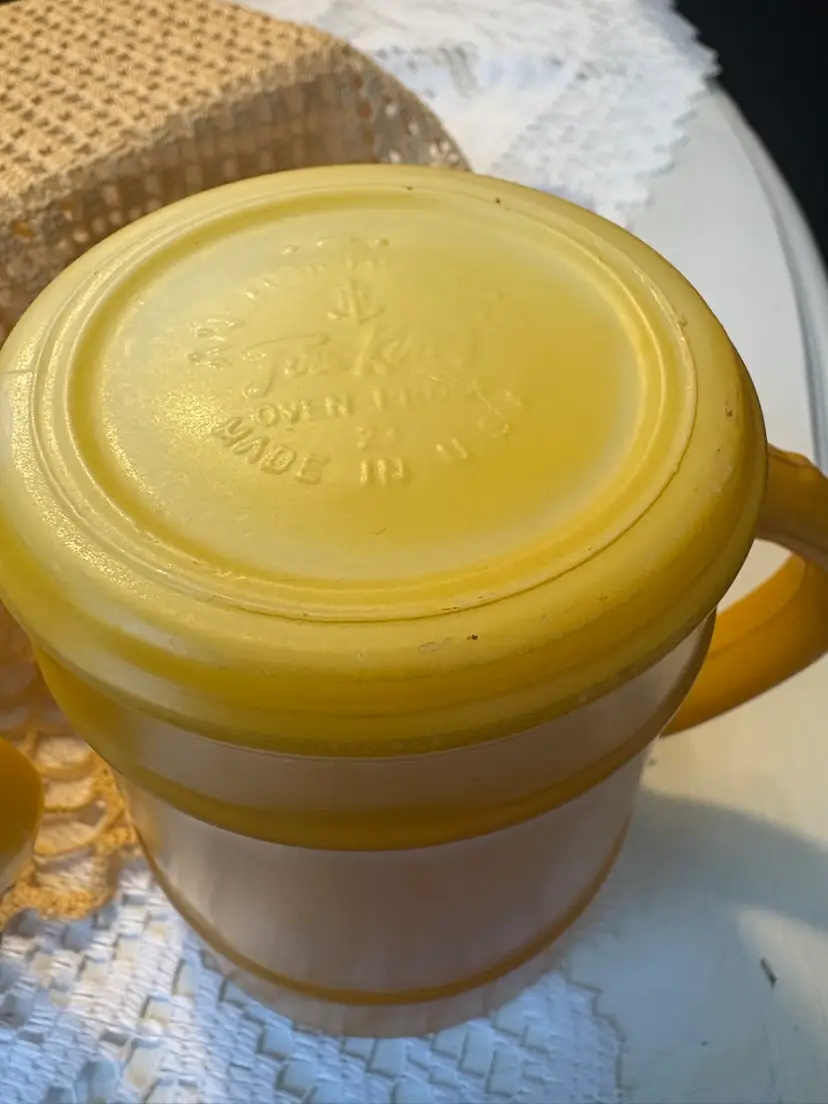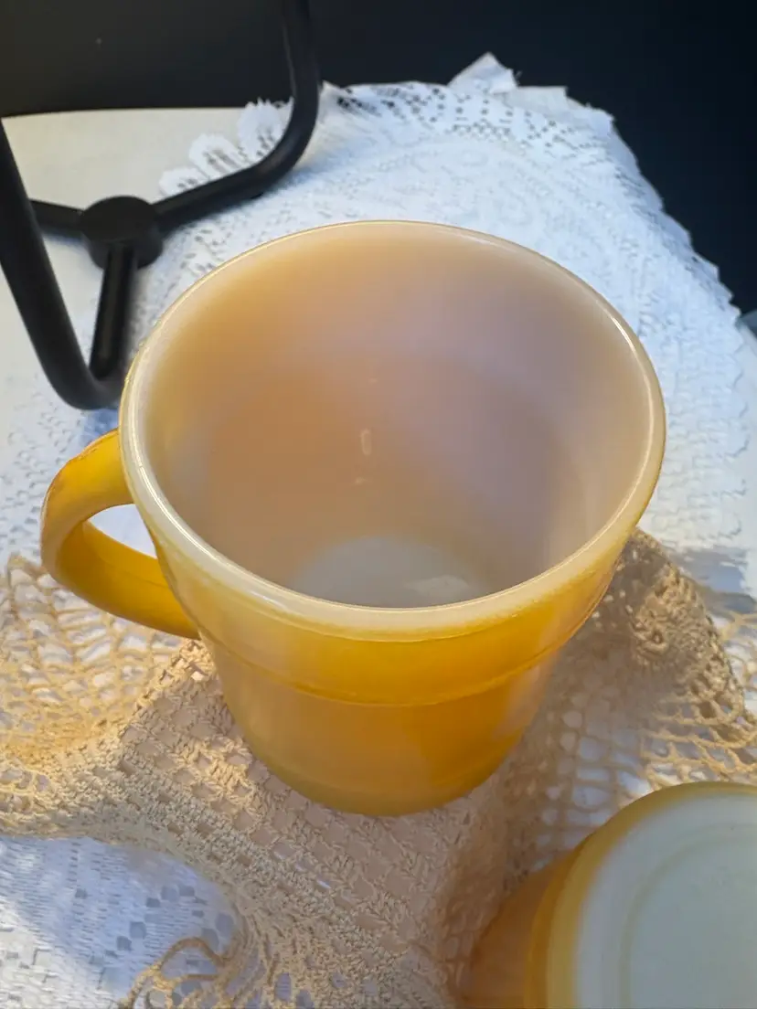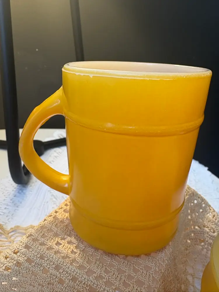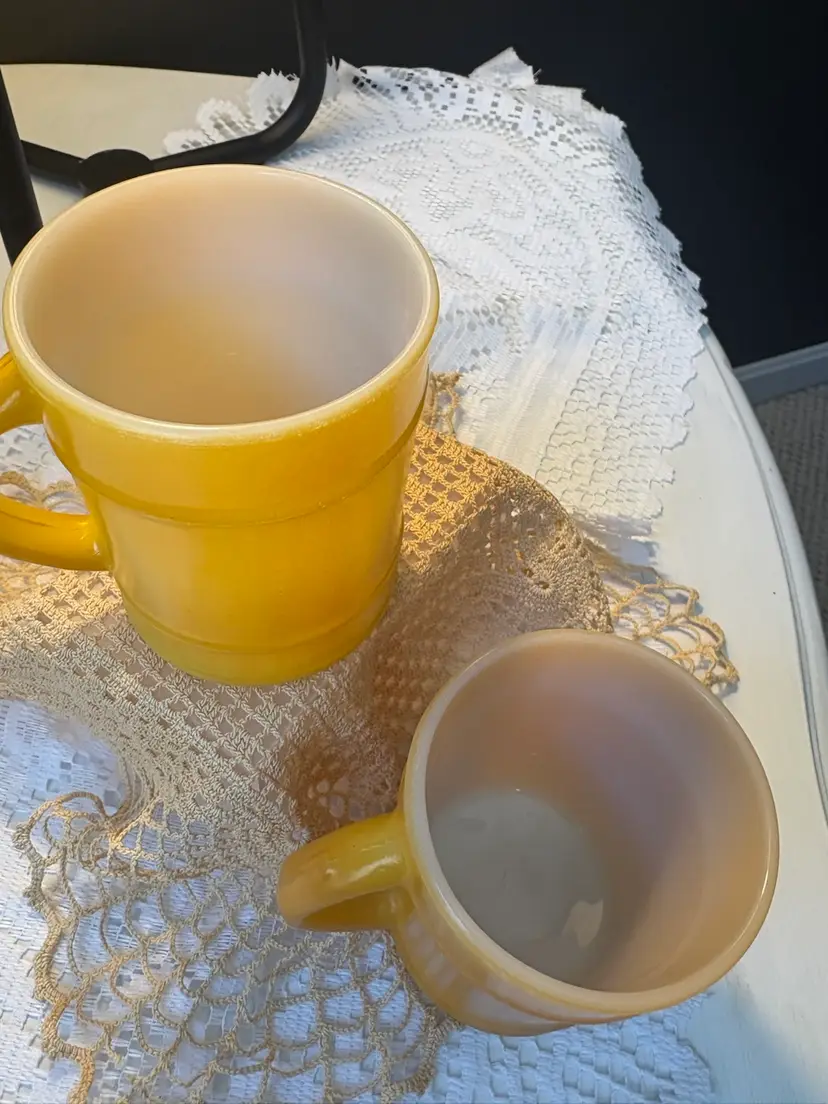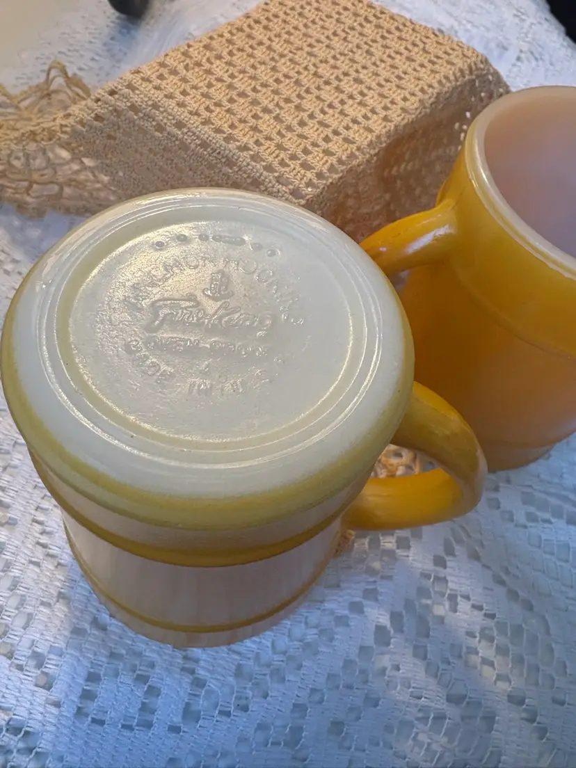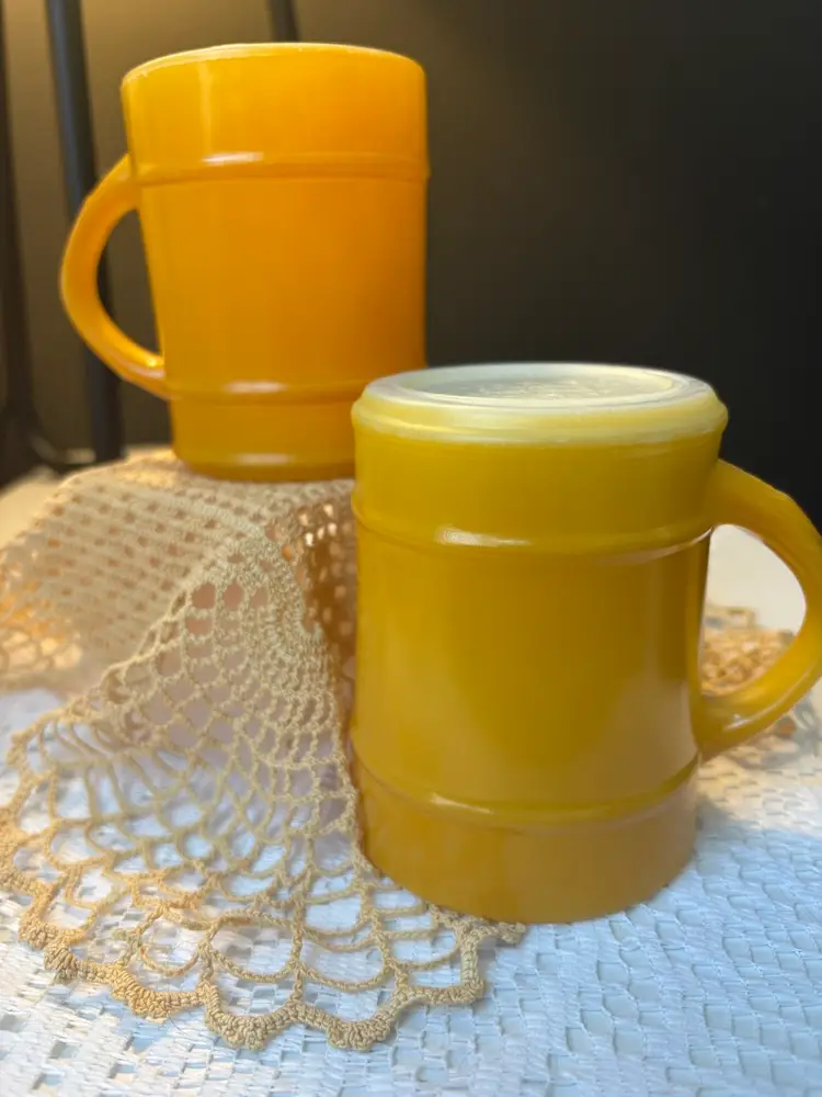 Yellow Fire King Barrel Mugs X2