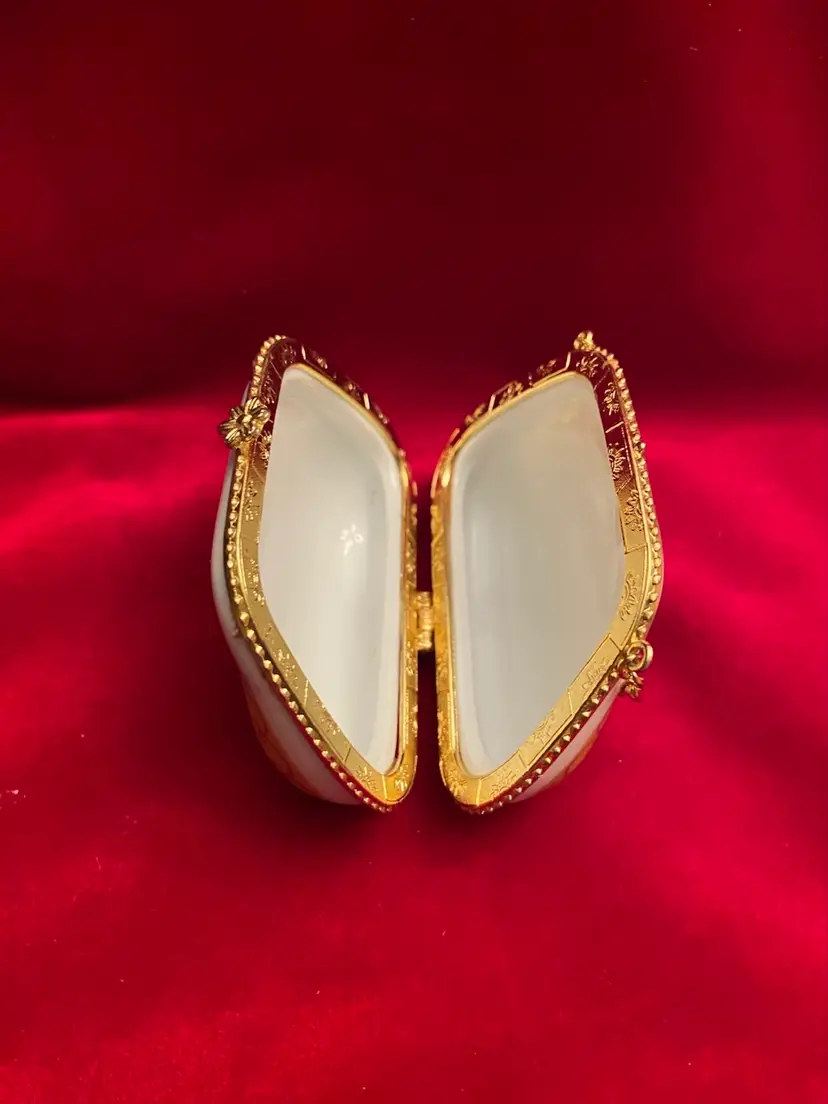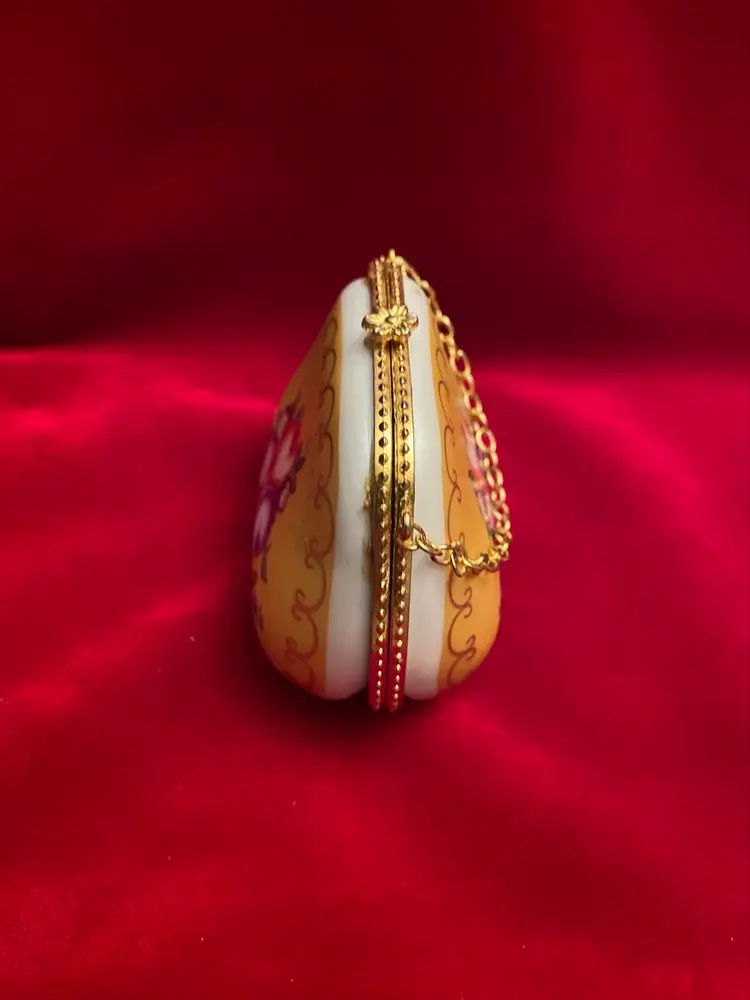 Yellow handbag style trinket box flower design, gold colored trim