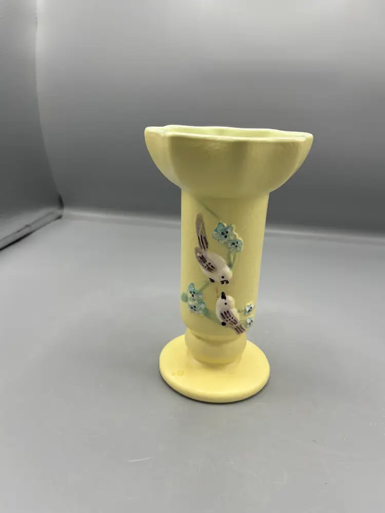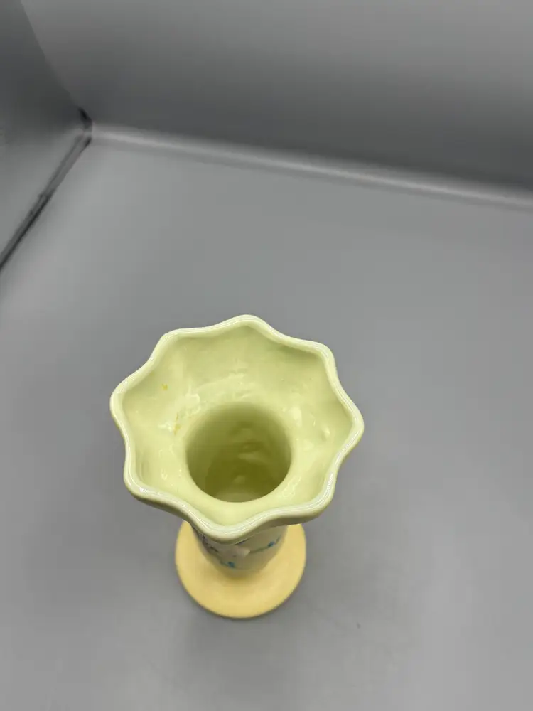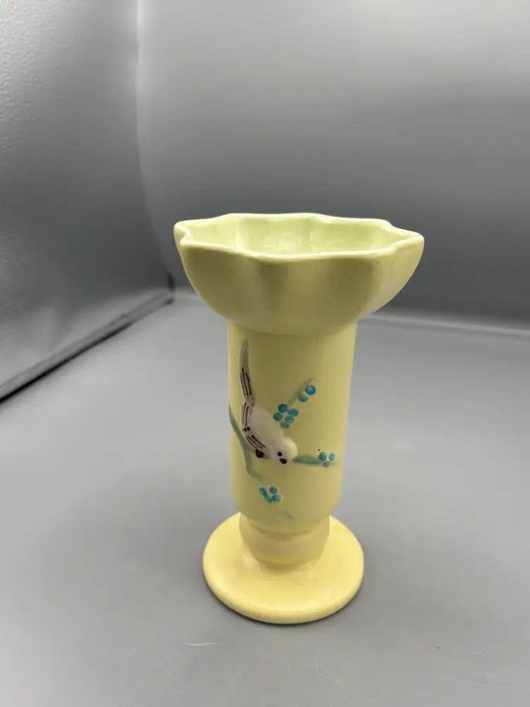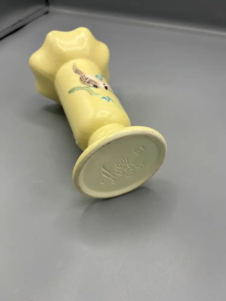 This striking Yellow Hull pottery vase showcases the beloved Serenade pattern, a hallmark of mid-century American ceramics. Standing 6½ inches tall with a 4-inch diameter, this vintage piece exemplifies Hull's signature craftsmanship and distinctive glaze work. A refined addition to any collection of art pottery or decorative home décor.