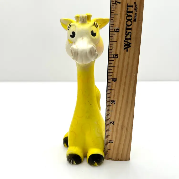 As shown 6.5 inches tall and 2.75 inches wide Still squeaks, some hard to remove dirt