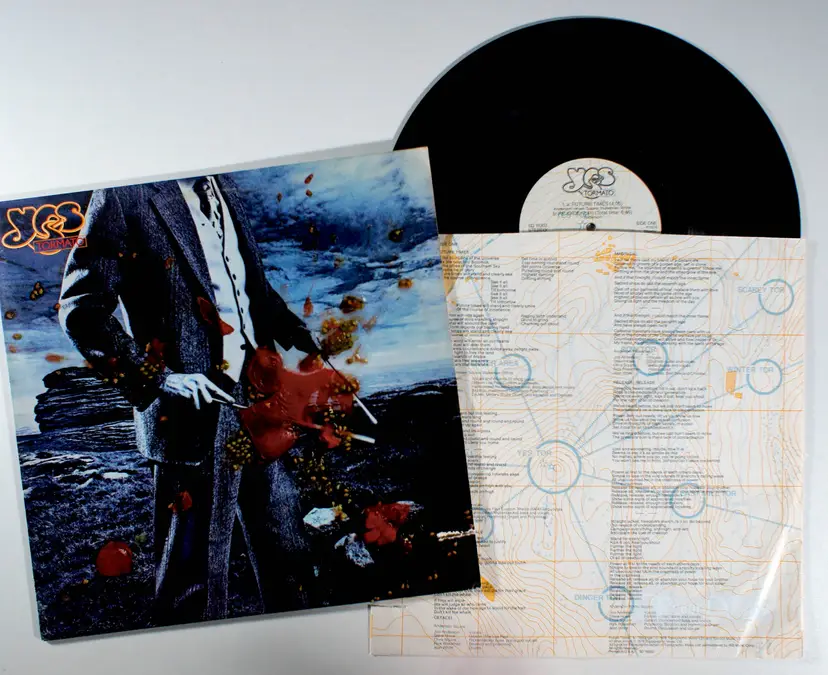 Tormato, by the English progressive rock band Yes, charted at No. 8 in the U.K. and No. 10 in the U.S. Tormato is Yes' last studio album to feature both singer Jon Anderson and keyboardist Rick Wakeman in the band's line-up before Yes disbanded in 1981. Tormato – which was the subject of another Hipgnosis cover design – was still a Top 10 hit worldwide, and produced the minor hit single, Don't Kill the Whale. The original album title was to be Yes Tor, referring to a geological formation in southern England. The photographs taken by Hipgnosis for the album cover were seen as so unimpressive that Rick Wakeman, in frustration, threw a tomato at the pictures. The cover and title were adjusted accordingly.