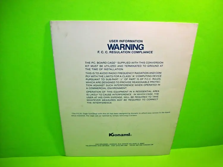 Game Title: Yie-Ar Kung-Fu Country/Region of Manufacture: United States Brand: Konami Original: Service Manual