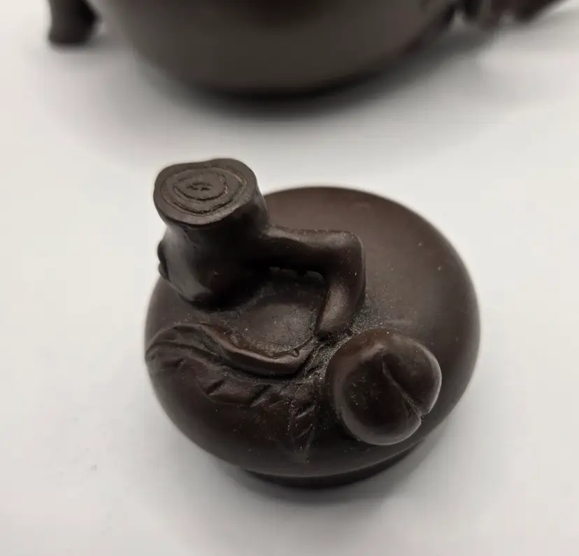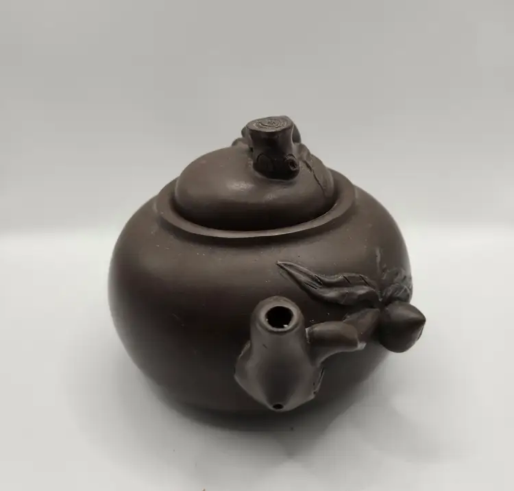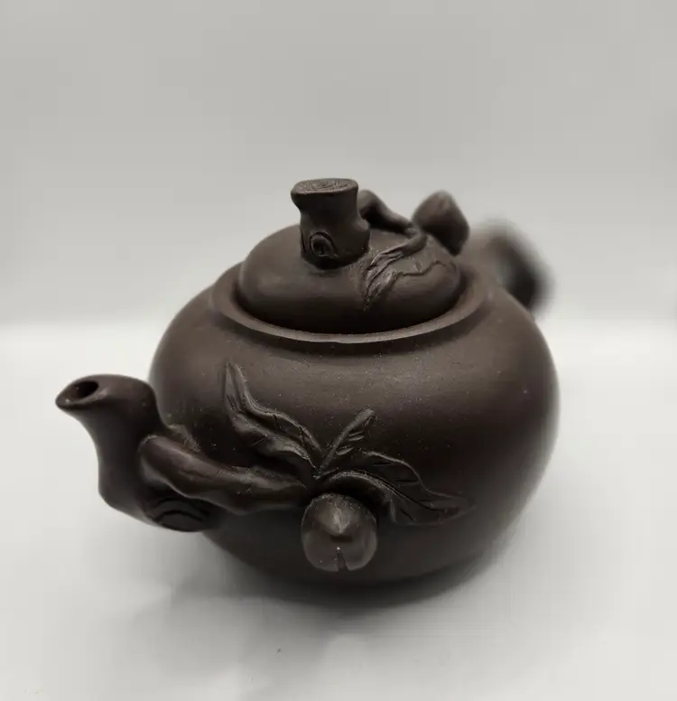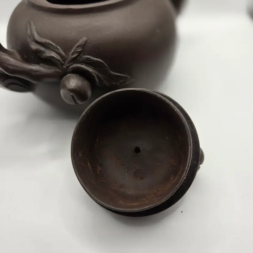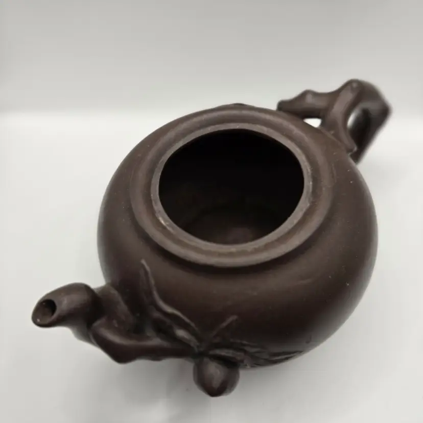 Yixing Vintage Dark Purple Clay Teapot with Branch and Bud design. 7" x 4.25" Good Vintage Condition. Has been used. Signed on bottom. Mark on bottom edge is original and is not a crack. No chips, cracks or crazing. Please see photos as they are part of the description. Item will be well wrapped before shipping. Items from my listings can be combined for shipping if safe to do so.
