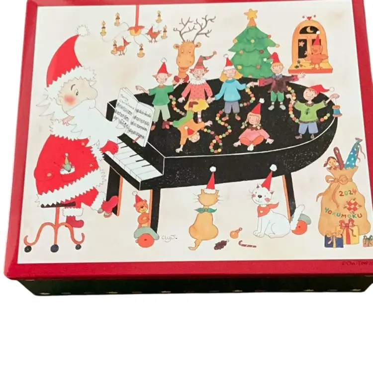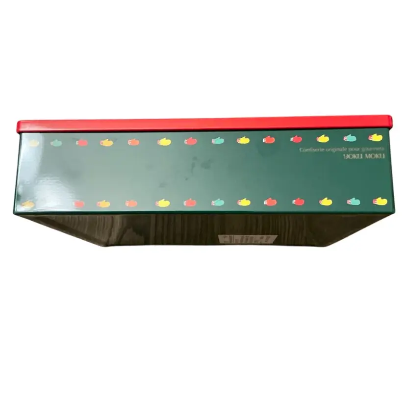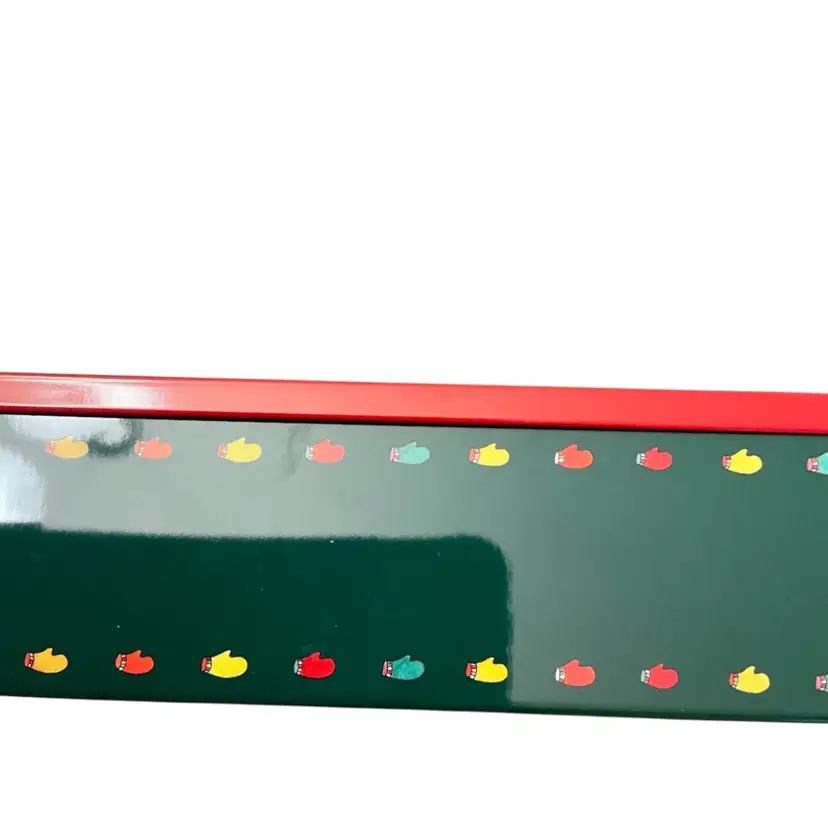 This is a contemporary cookie tin that would have held an assortment of delicious specialty treats. The cookies are gone but it is now ready for you to fill it with your own holiday goodies. Measurements are 7 1/4 by 8 1/4 and 2” in depth.