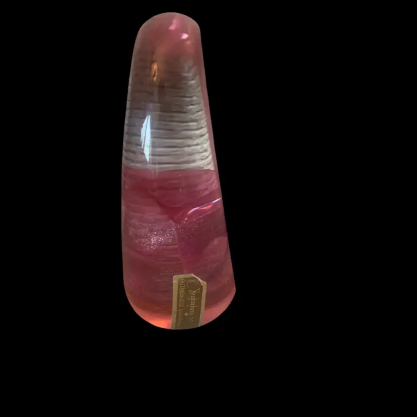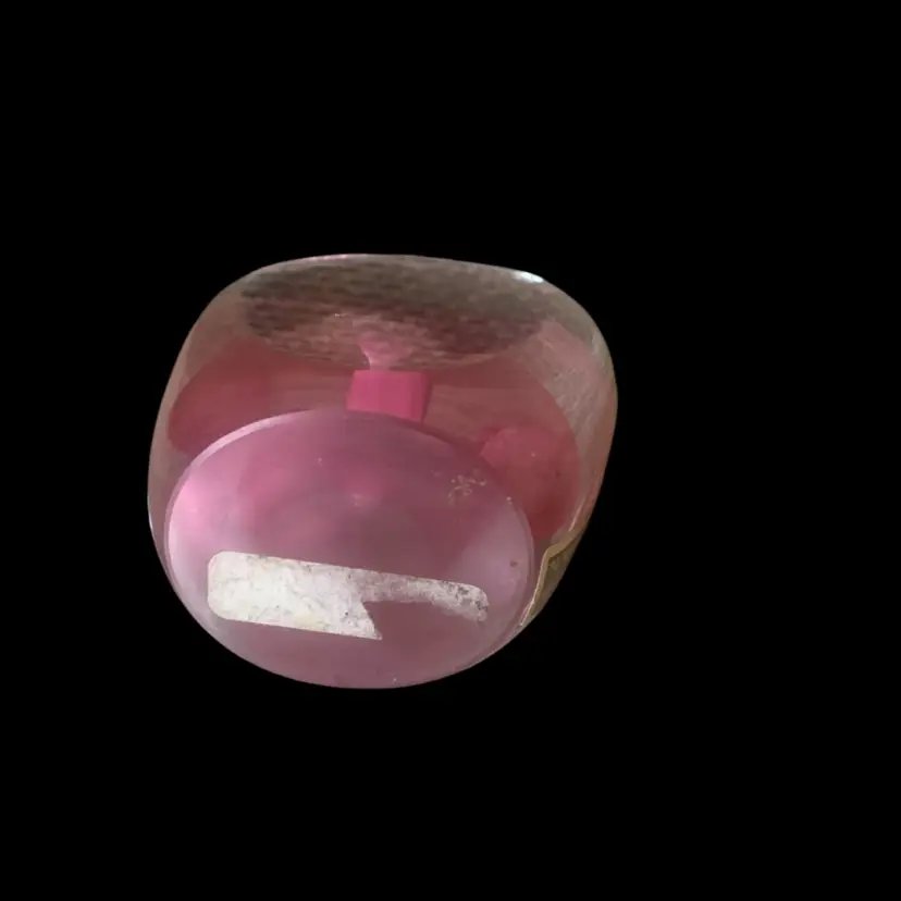 No chips or cracks. Label on side part of original price tag on bottom. 3 x 2 x 4 3/4 inches