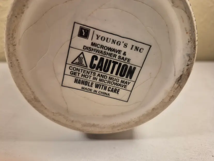 Young's INC HELLO Large Coffee Mug Vintage from QVC Has a few chips around the rim. NOT Microwave friendly. Very well used and loved. Comes from a clean and smoke free environment. Thank you for visiting my page!