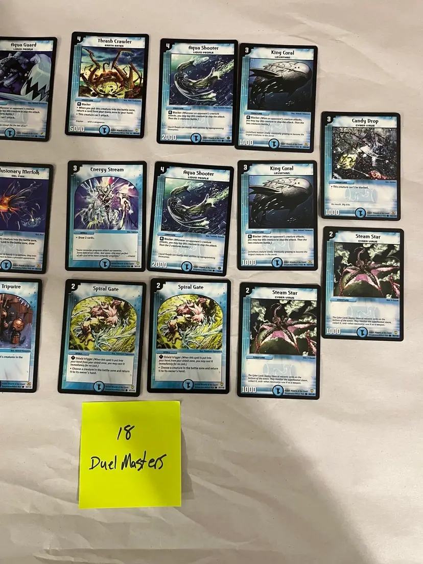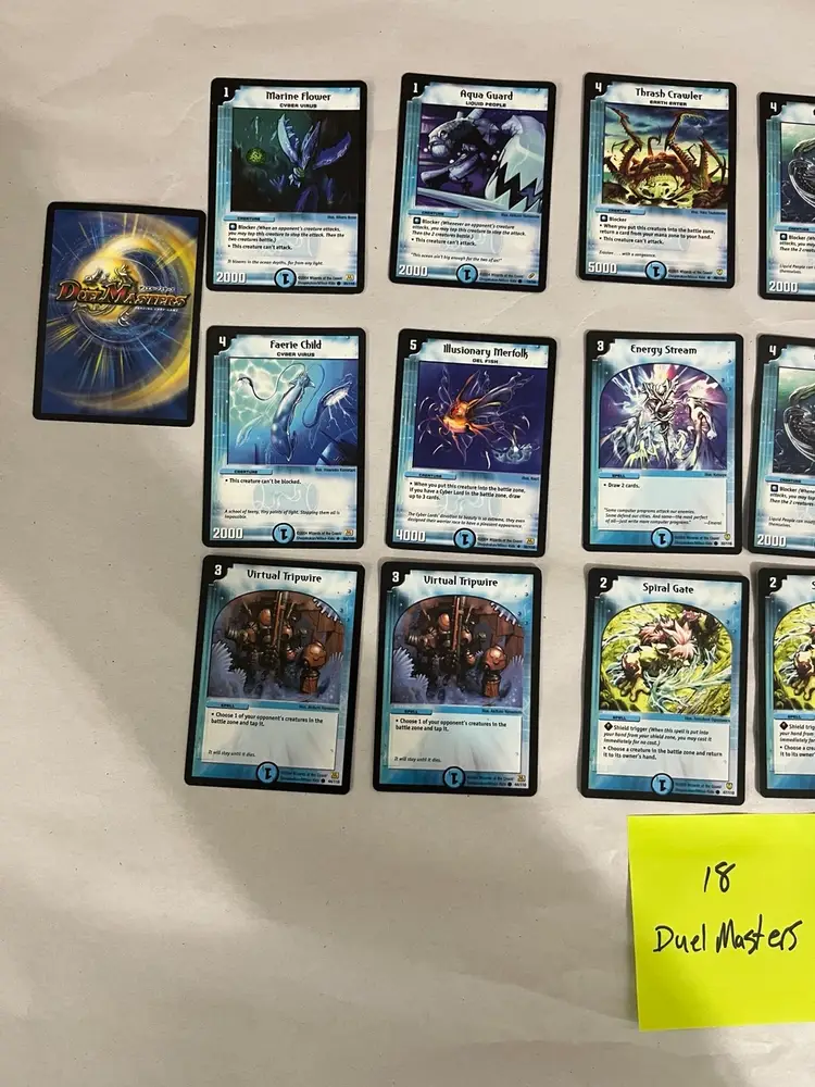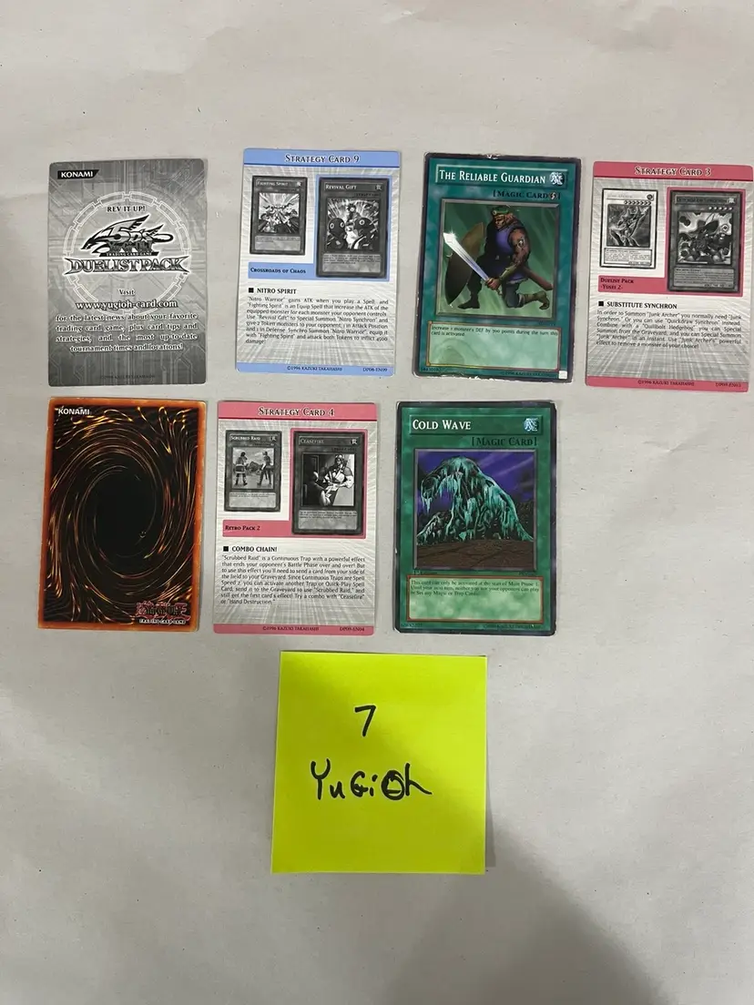 7 Yugioh cards dated 1996 18 Duelmasters cards dated 2005