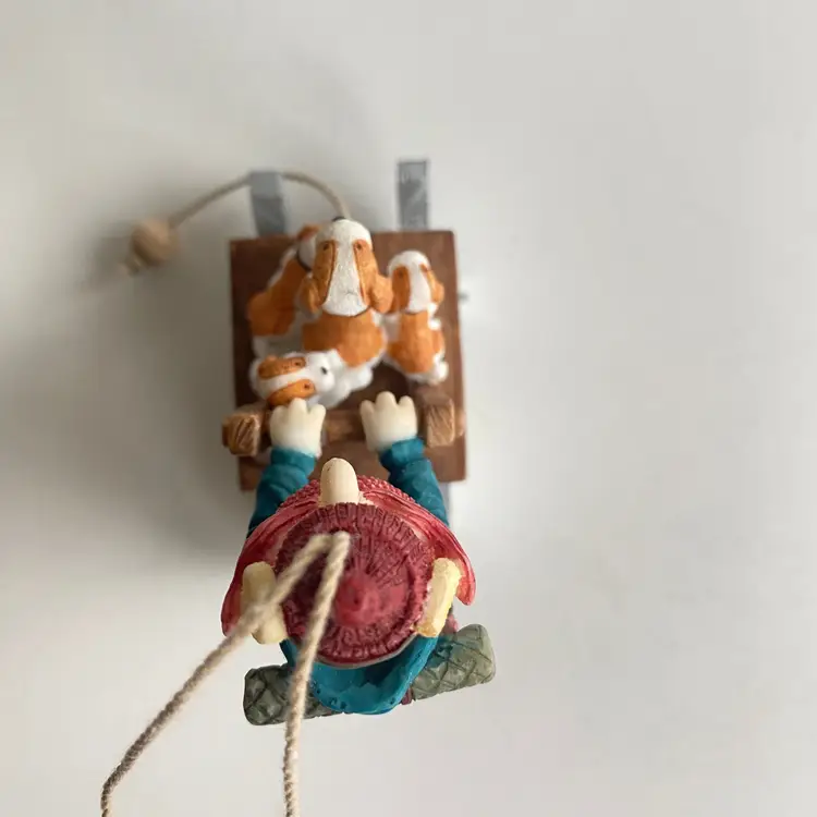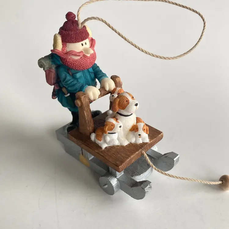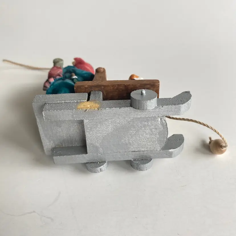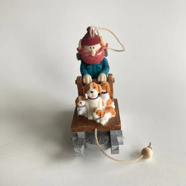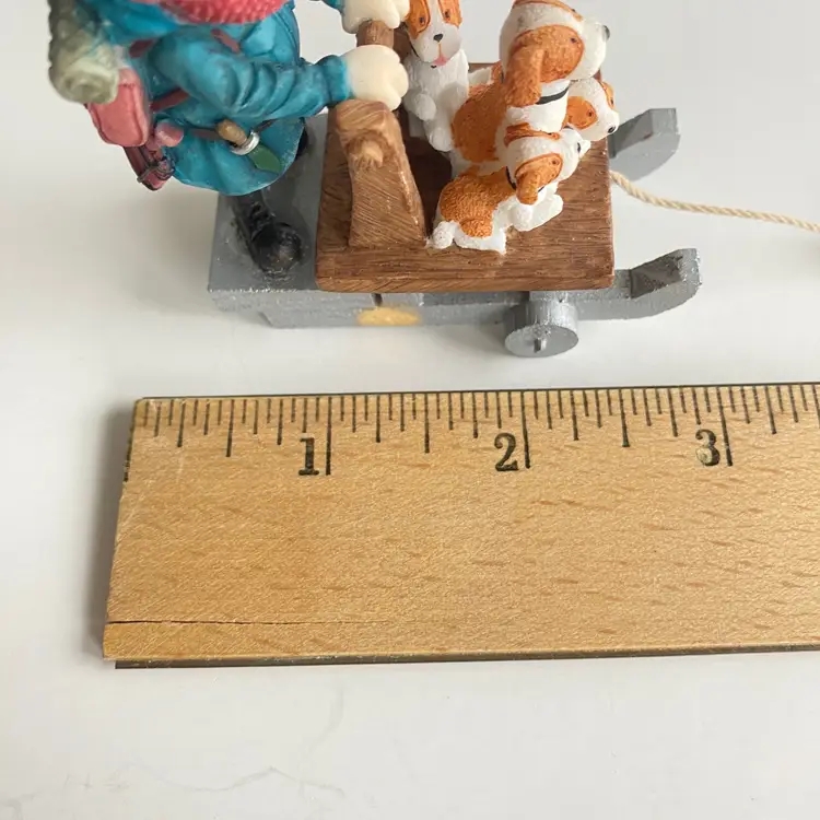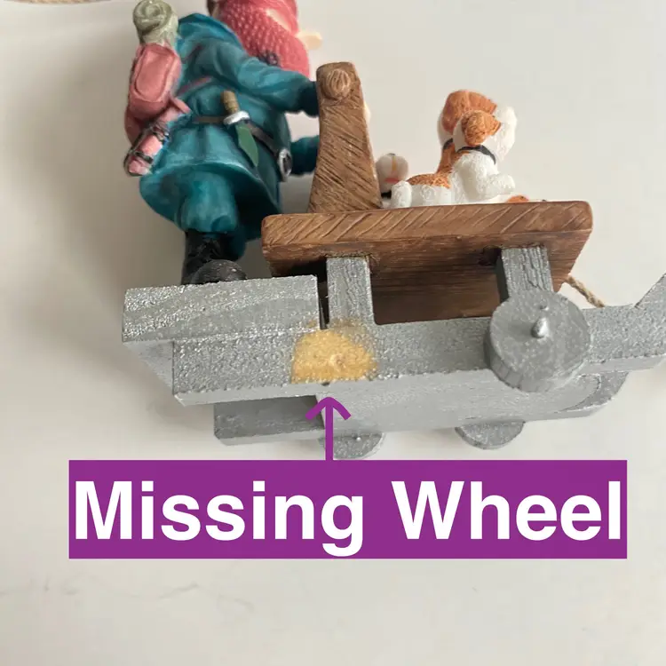 Enesco #119340: character from the 1964 Claymation "Rudolph the Red-Nosed Reindeer". Appears to be in very good vintage condition, other than one MISSING WHEEL on the sled (see labelled photo).