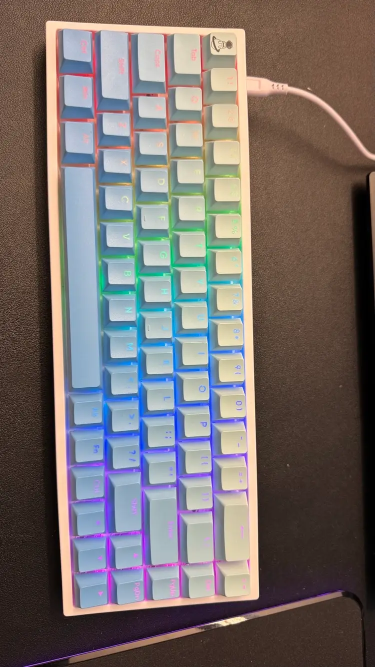 This is a great keyboard with customizable RGB lights via shortcuts keys on the keyboard or the Yunzii software that’s free to download. You can also rebind keys on that software.