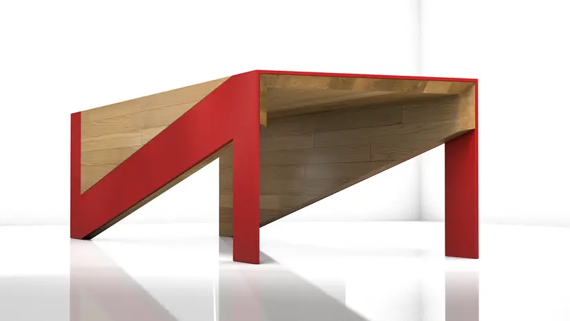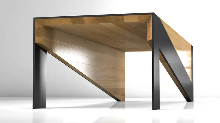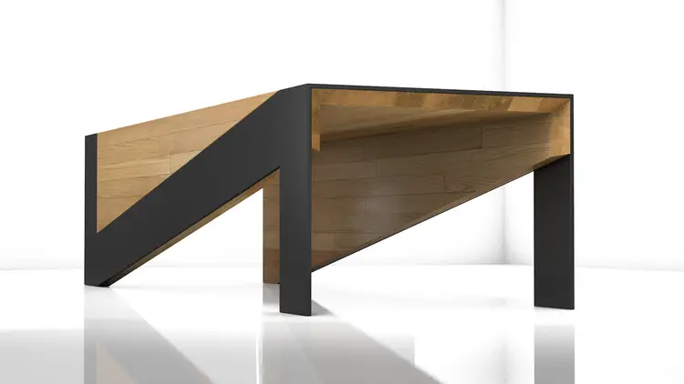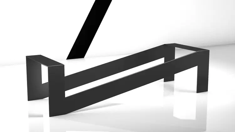 The modern coffee Z-Table base design is water jet cut from sheet steel, welded into one piece and finished with a powder coat.