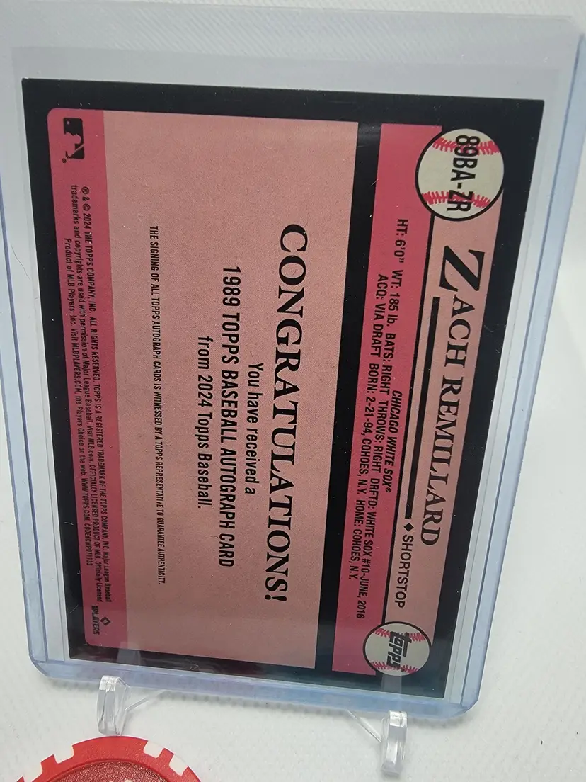 Zach Remillard 2024 Topps Series 1 1989 Rookie Autograph #89BA-ZR RC Auto Sox