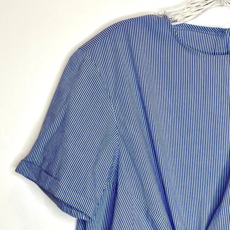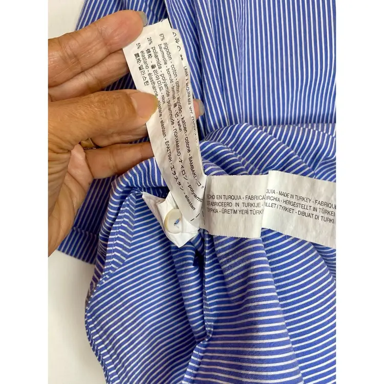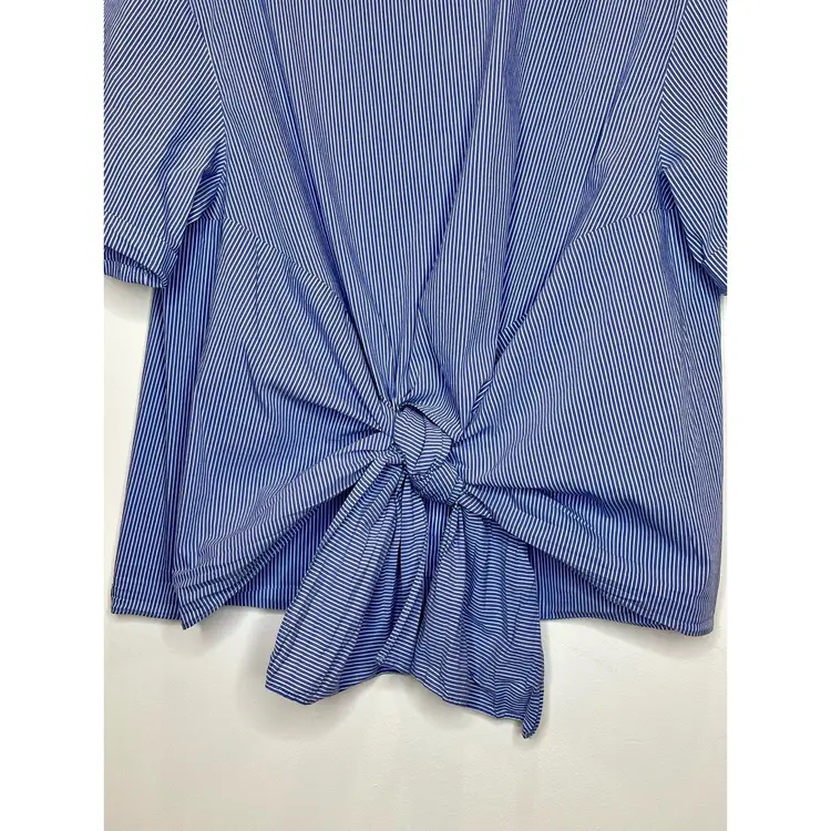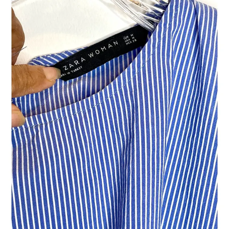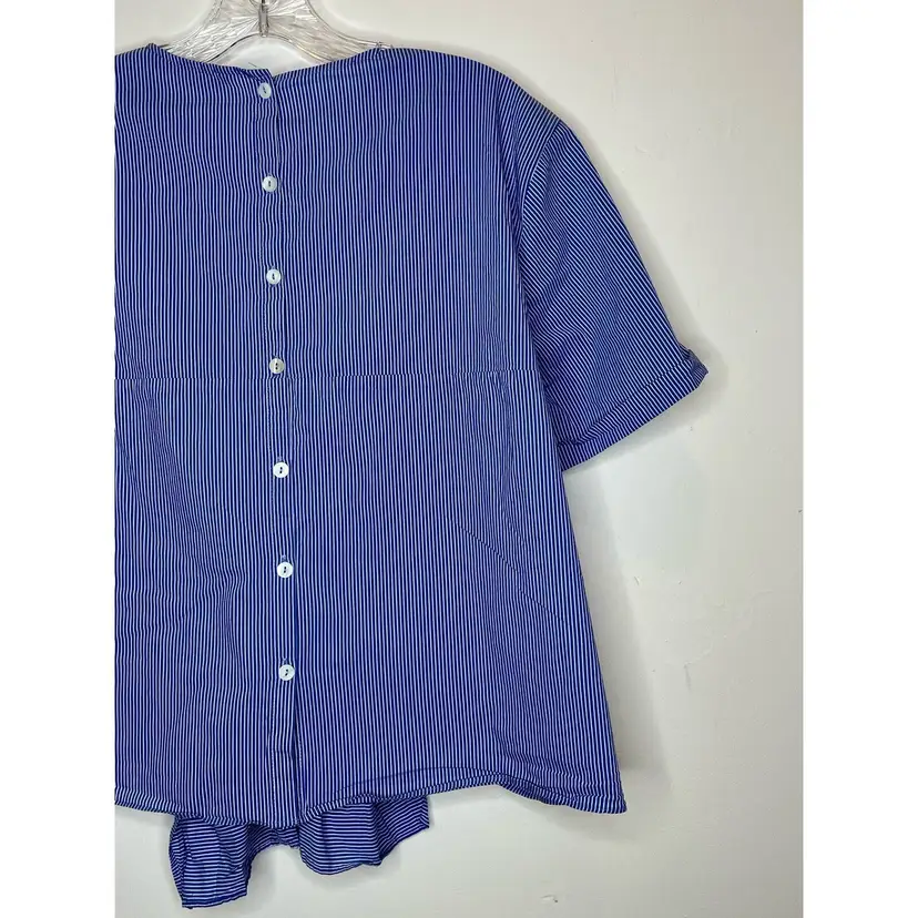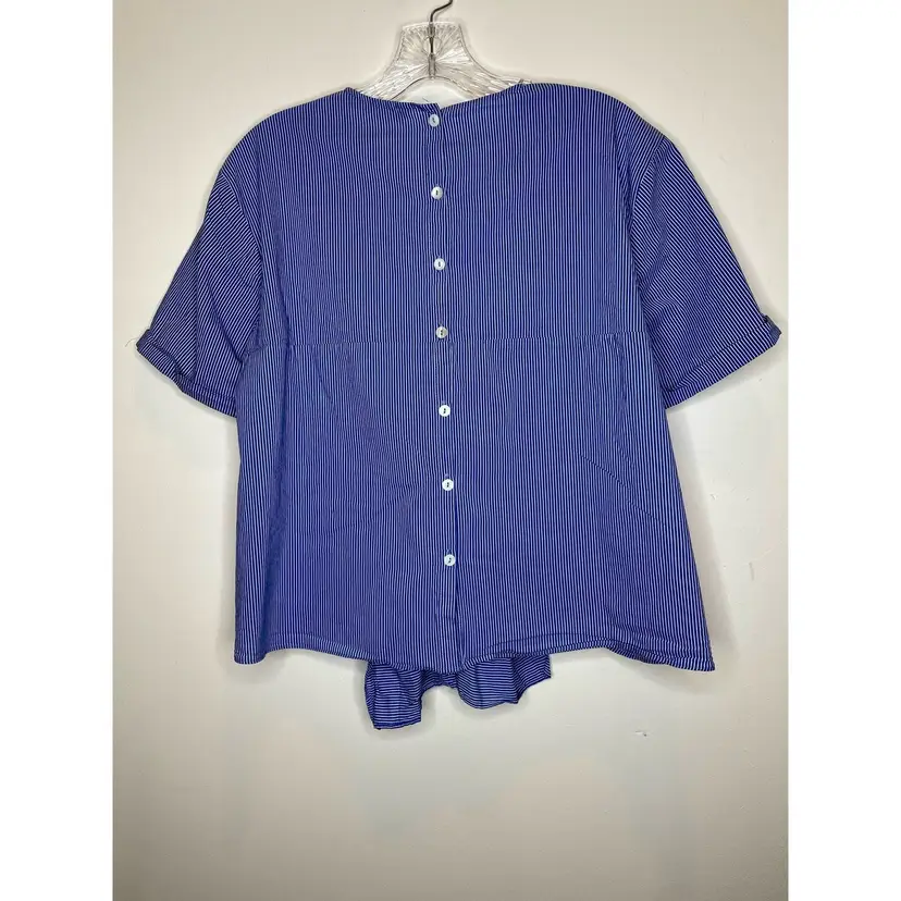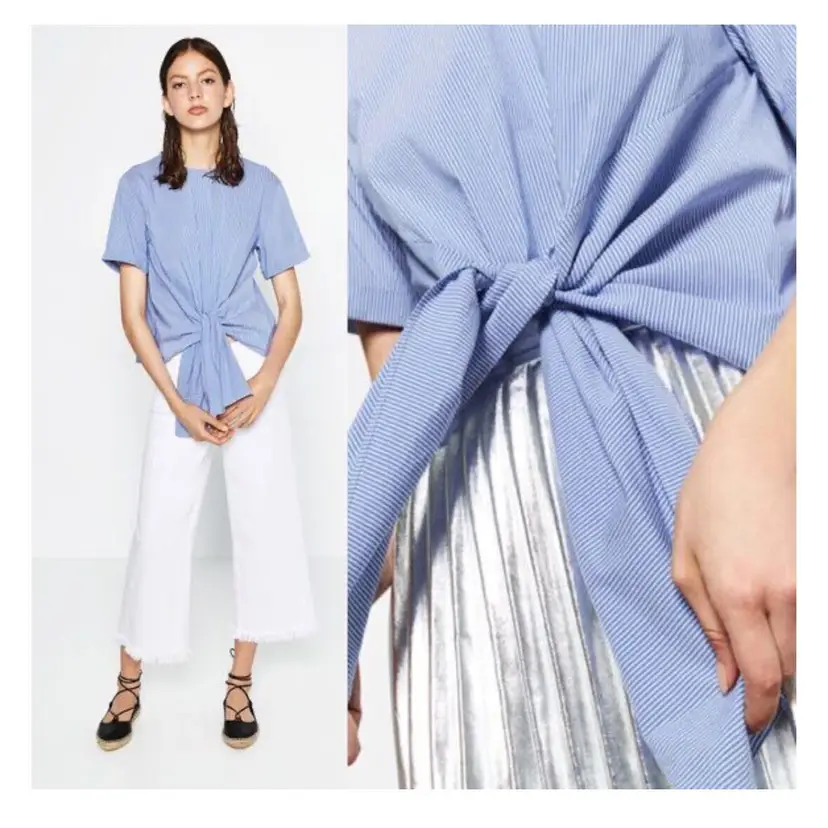 Sleeve Length: Short Sleeve Closure: Tie Neckline: Round Neck Size: M Color: Blue Material: Cotton Accents: Bow, Button Brand: Zara Fit: Relaxed Size Type: Regular Department: Women Type: Blouse Style: Cropped Theme: Bohemian, Nautical Features: Oversized