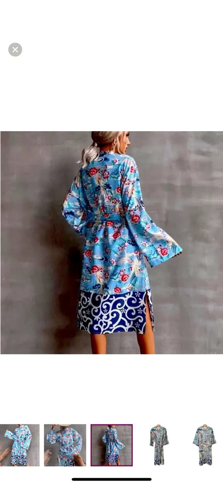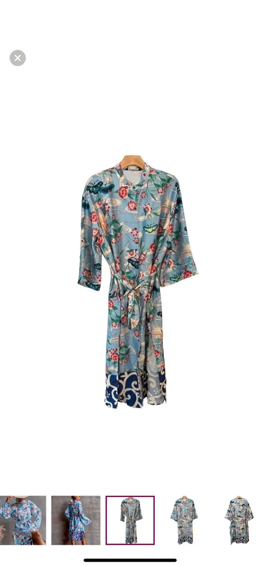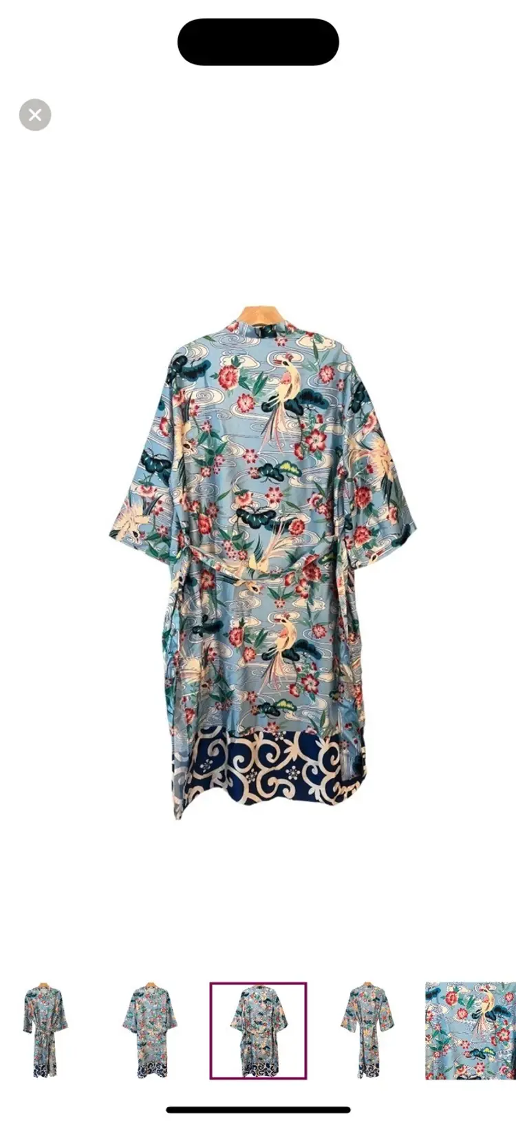 ZARA Floral Bird Tropical Belted Silky Kimono Dress/Kaftan Size XL NEW