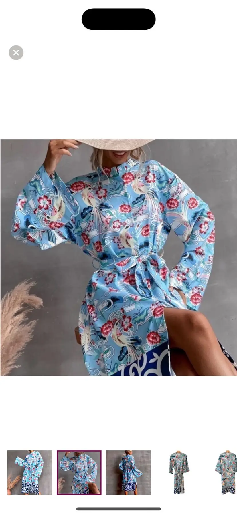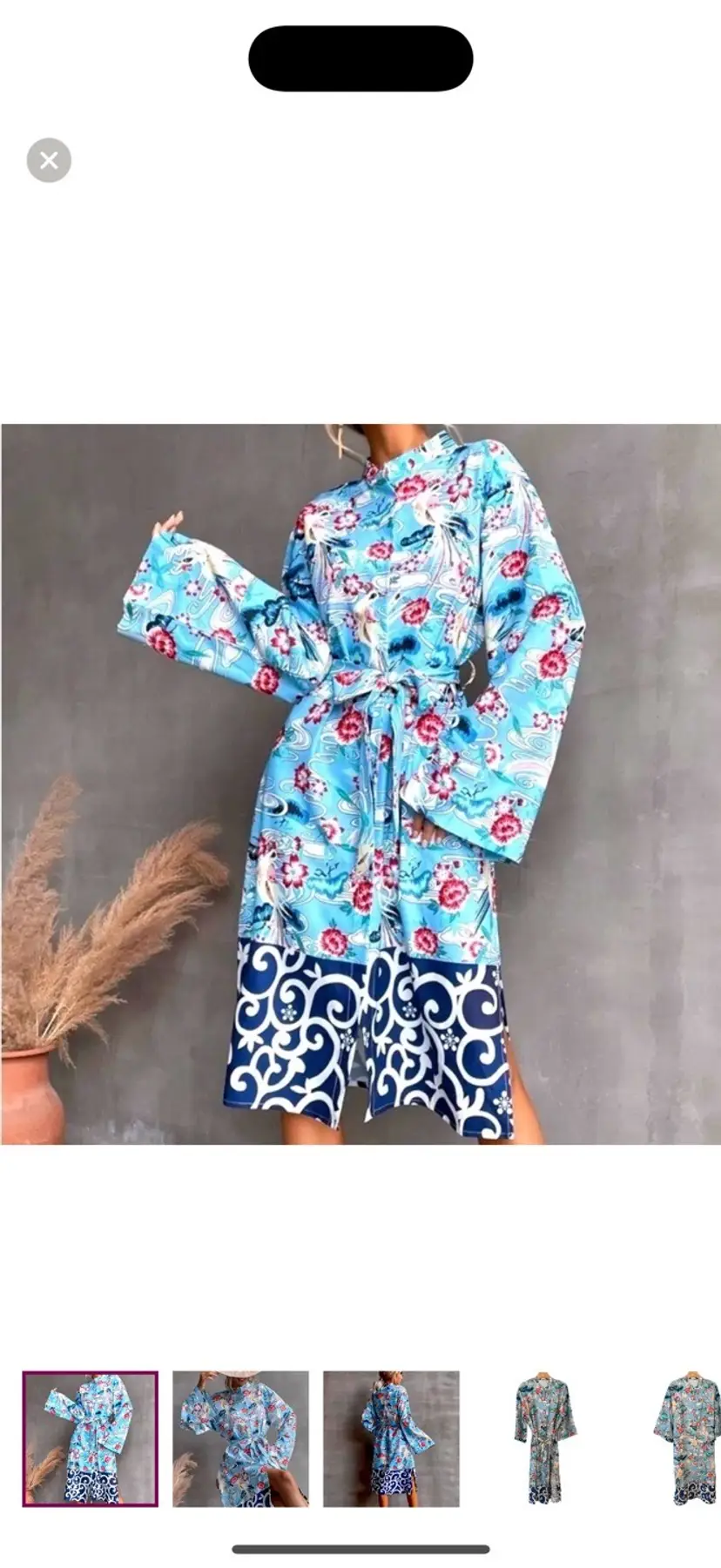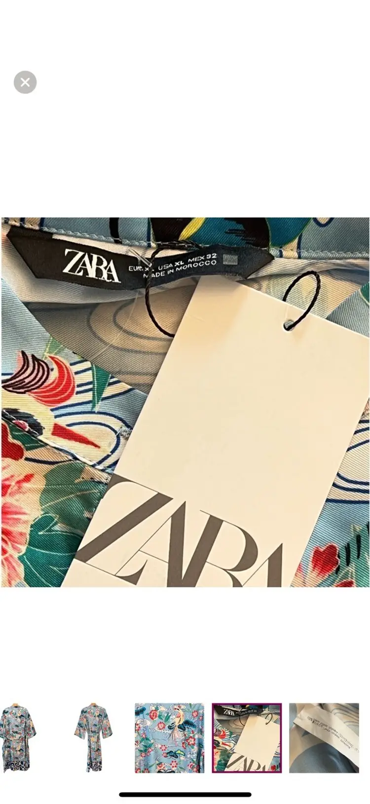 ZARA Floral Bird Tropical Belted Silky Kimono Shirt Dress/Kaftan Size XL NEW