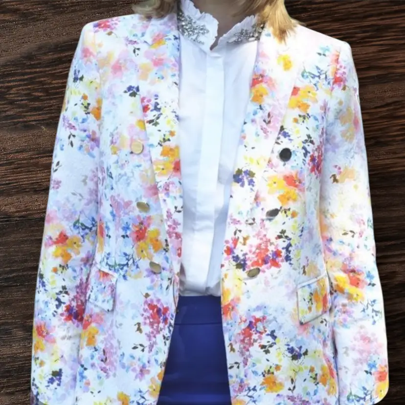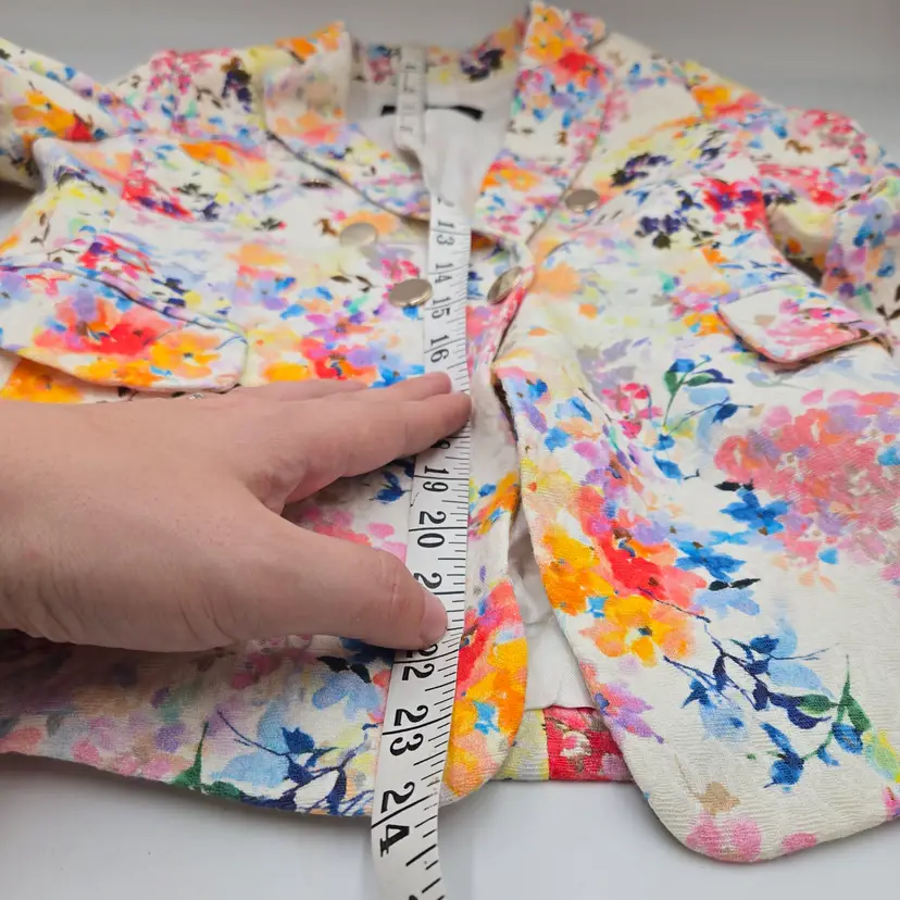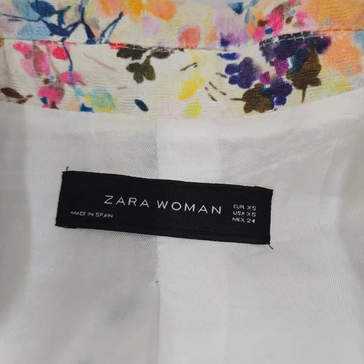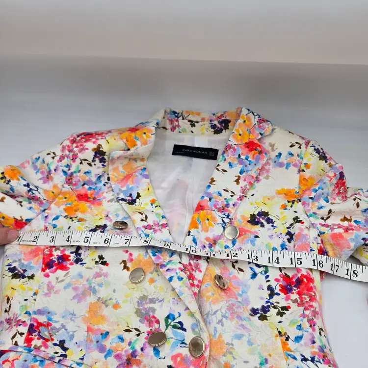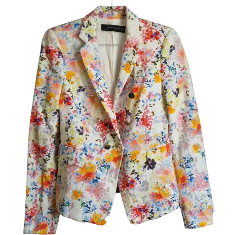Zara Woman Spain Spring Summer Floral Lined Jacket with Silver Buttons Size XS