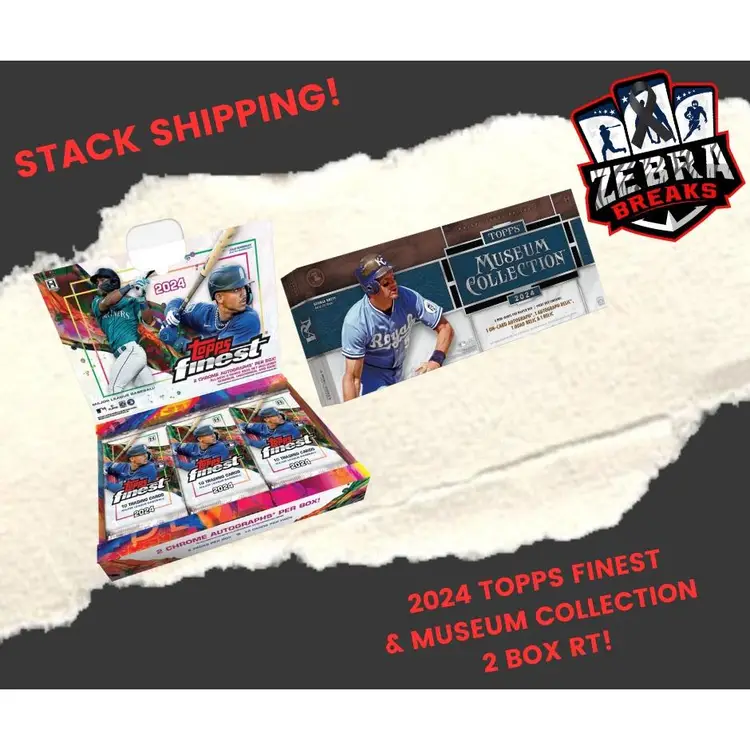 1 Hobby Box of EACH 2024 Topps Finest & Museum Collection STACK SHIPPING APPLIES All cards stack, you can request shipping by purchasing the "Stack Shipping Request" Item in the marketplace for Zebra Breaks specifically. Stack shipping is a $5 flat fee no matter how large your stack is. Shipping will occur the Friday/Saturday following your request if placed by Thursday night of the week you request shipping.