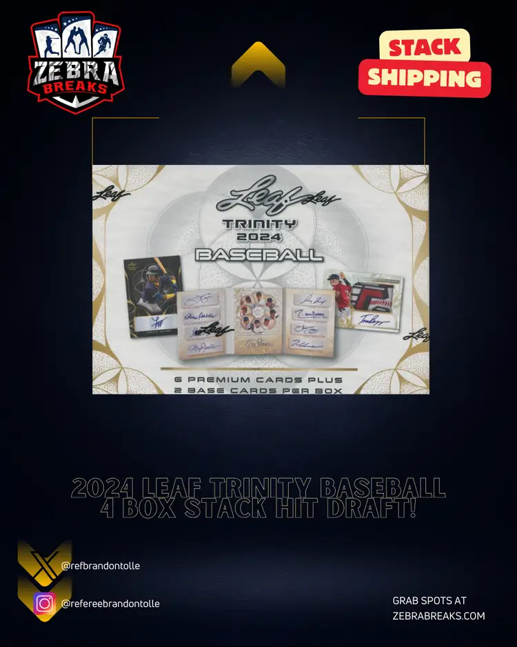 4 Hobby Boxes of 2024 Leaf Trinity. Hit Draft Style Hit Draft will talk place in ZB Discord after it happens. Everyone gets something! STACK SHIPPING APPLIES