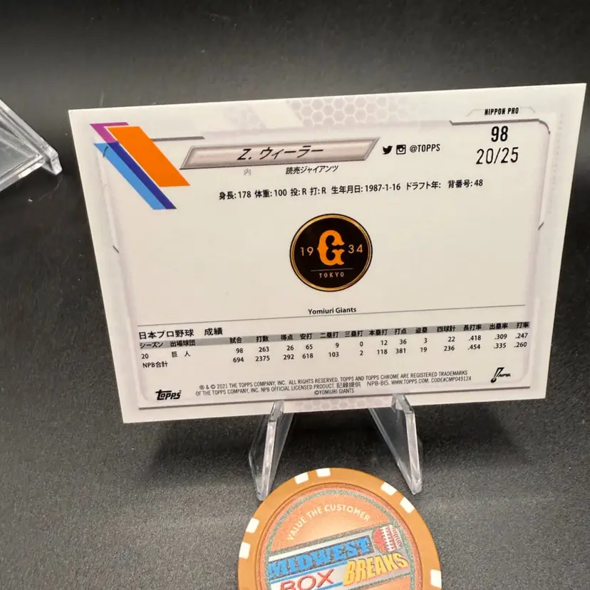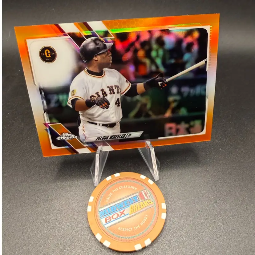 This is a Zelous Wheeler #20/25 orange chrome from 2021 Topps Chrome NPB release.