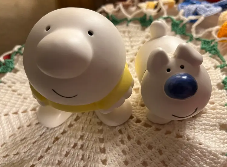 THESE SHAKER ARE SO MUCH FUN .. THEY ARE LOOKING UP AT YOU .KIDS WILL LOVE THEM AS A KID .. WE ALL LOVED READING HIM IN THE PAPER .CANT REMEMBER THE DOG NAME 🐶