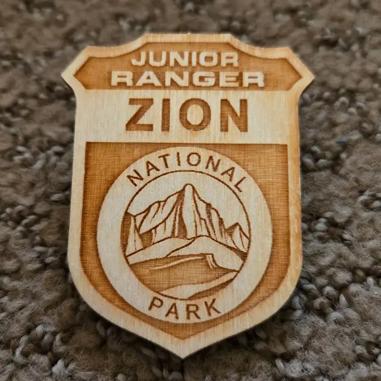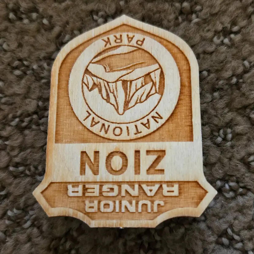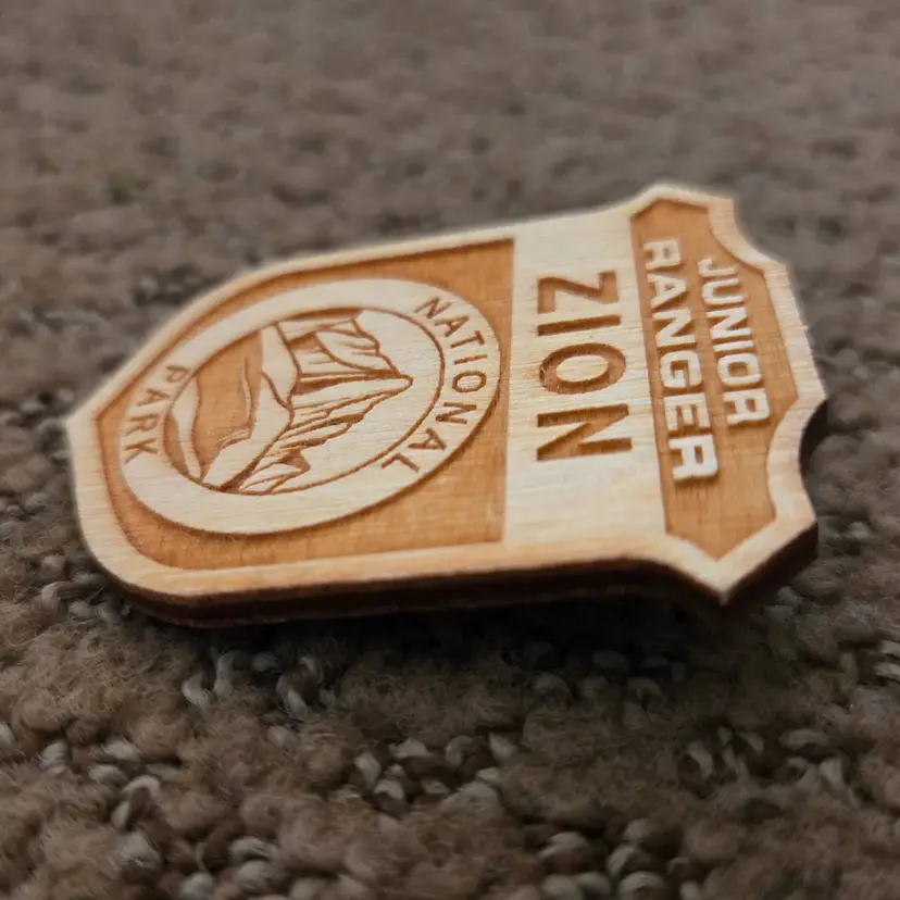 Junior Ranger Badge Zion National Park Service Utah Wood Burned NPS Pin 2" Long approximately. Used condition with a bit of fading, nicks, etc. Please view all the photos and please ask any questions prior to purchase when possible.