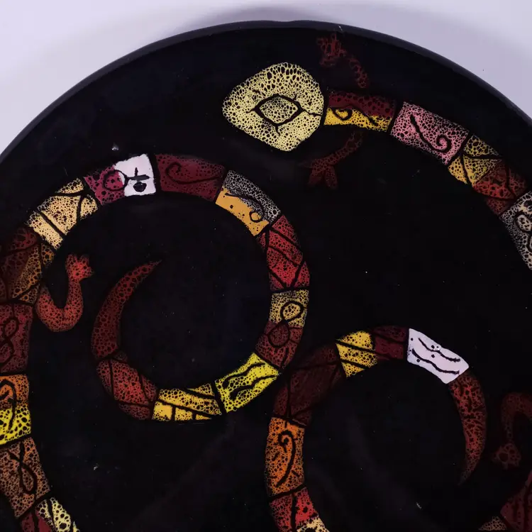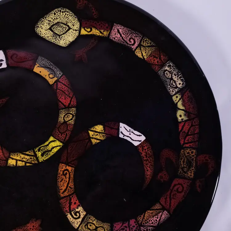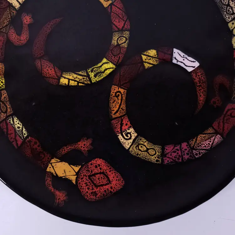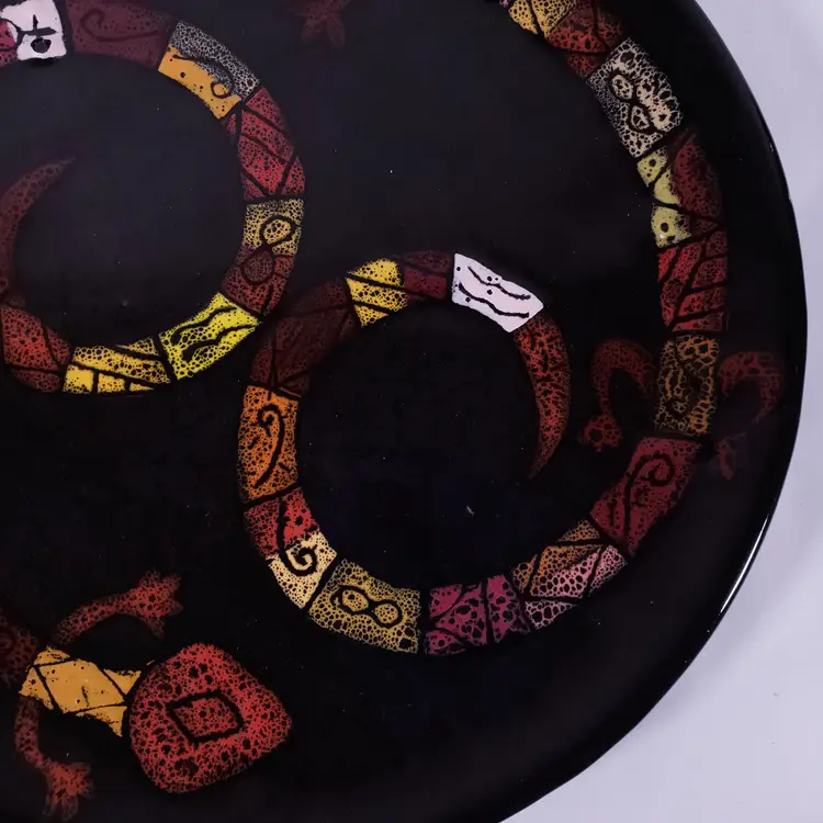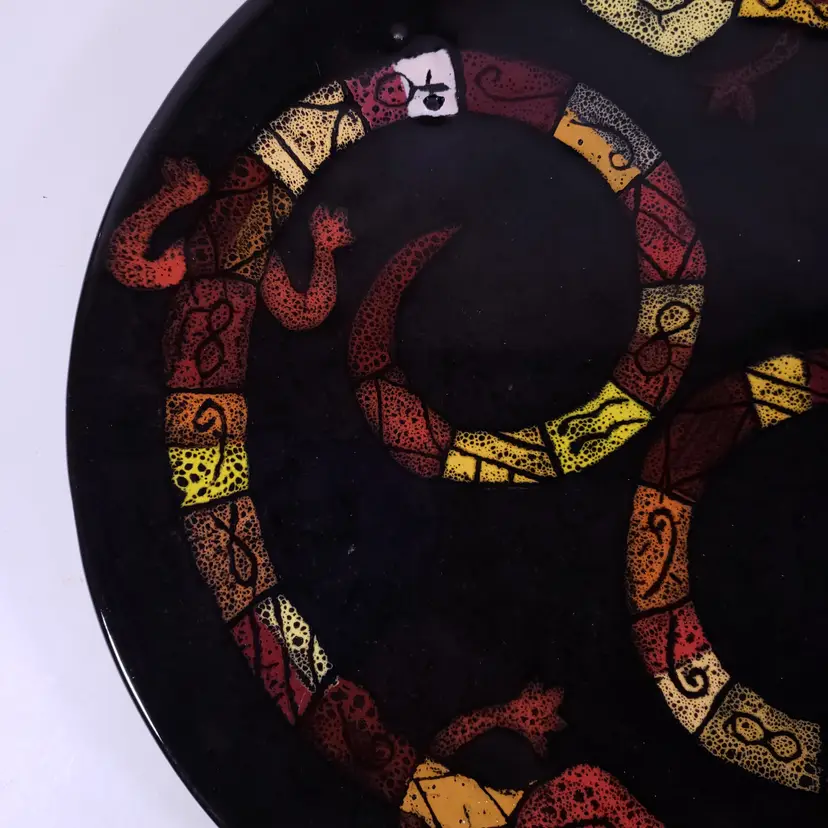 ZODIAC Art Pottery Astrology Lizard Snake Unique Large DECORATIVE PLATE SET