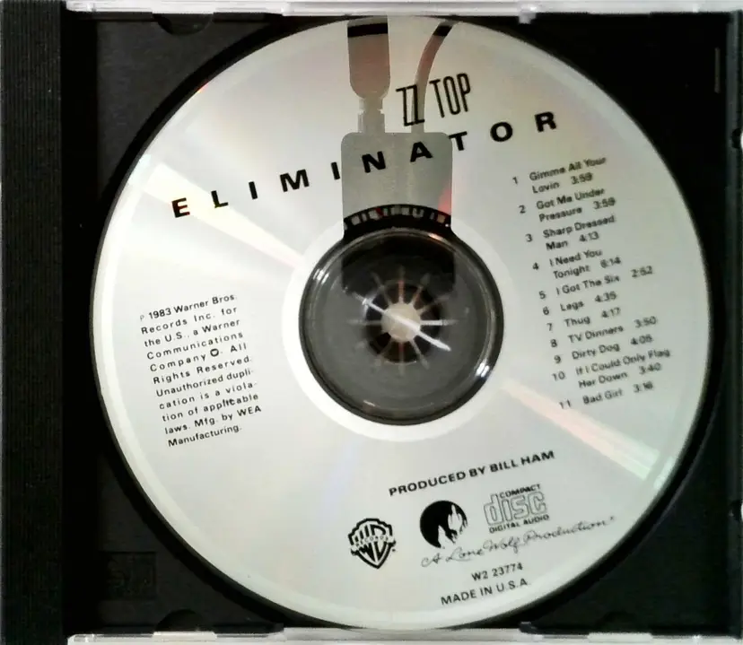 Up for sale is a used copy of Eliminator by ZZ Top, released in 1983 by Warner Bros Records. This iconic rock album features 11 tracks, including hits like "Gimme All Your Lovin'" and "Sharp Dressed Man," produced by Bill Ham.