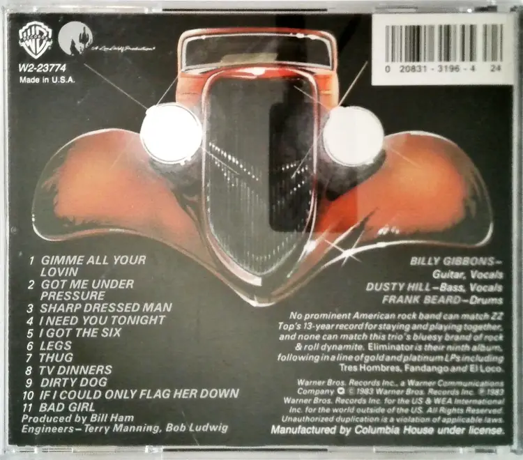 Gimme All Your Lovin' (3:59) Got Me Under Pressure (3:59) Sharp Dressed Man (4:13) I Need You Tonight (6:14) I Got the Six (2:52) Legs (4:35) Thug (4:17) TV Dinners (3:50) Dirty Dog (4:05) If I Could Only Flag Her Down (3:40) Bad Girl (3:16) Condition: Used. The CD and case show signs of wear consistent with previous use (please see photos for details). The disc is super clean, but there may be minor scratches. The artwork and booklet are included.
