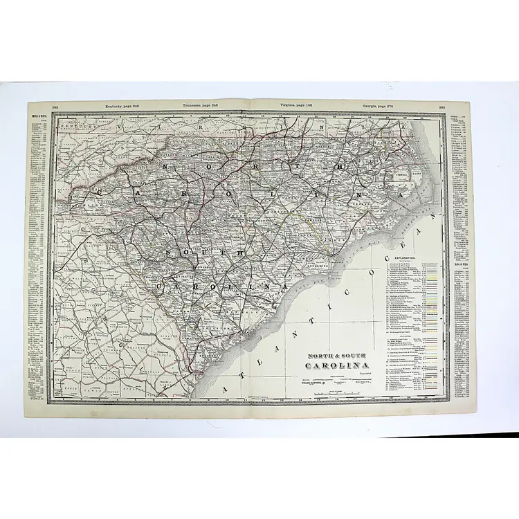 Railroad Map of North and South Carolina circa 1900 Large 22 1/2 x 17 1/2 Full Color Lithograph