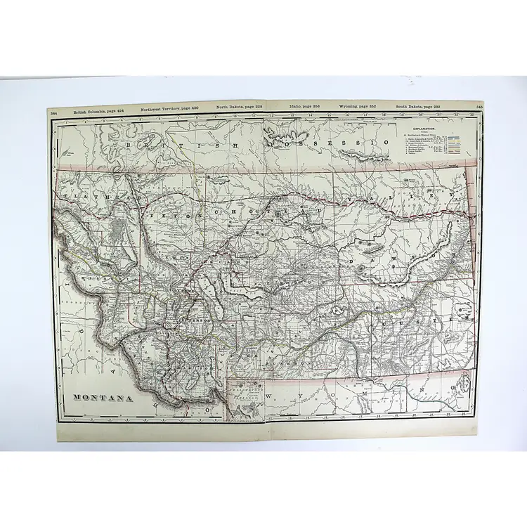 Railroad Map of Montana circa 1900 Large 22 1/2 x 17 1/2 Full Color Lithograph