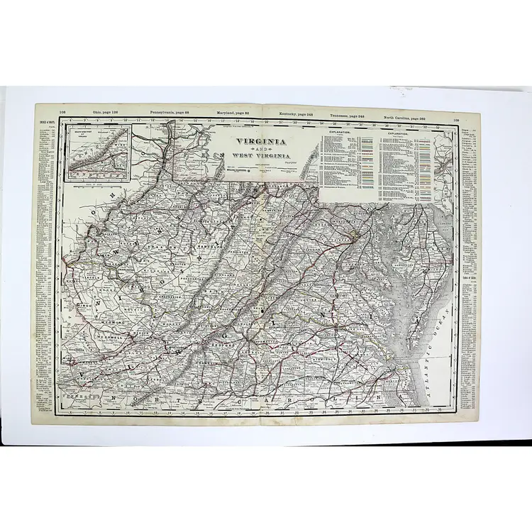 Railroad Map of Virginia and West Virginia circa 1900 Large 22 1/2 x 17 1/2 Full Color Lithograph