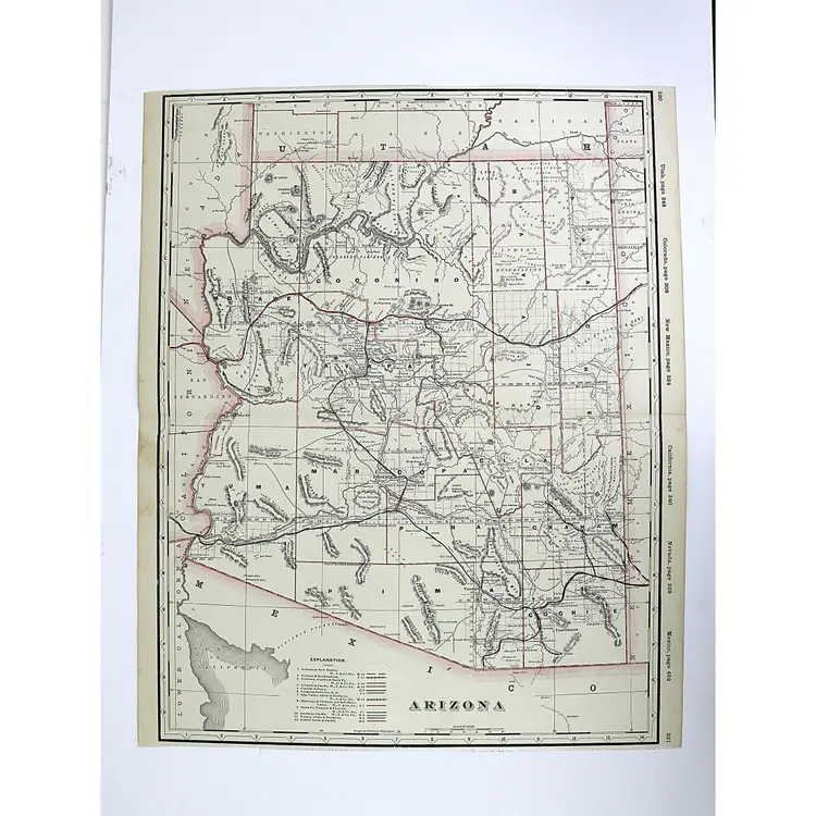 Railroad Map of Arizona circa 1900 Large 22 1/2 x 17 1/2 Full Color Lithograph