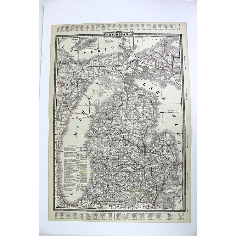 Railroad Map of Michigan circa 1900 Large 22 1/2 x 17 1/2 Full Color Lithograph