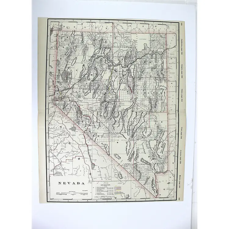 Railroad Map of Nevada circa 1900 Large 22 1/2 x 17 1/2 Full Color Lithograph