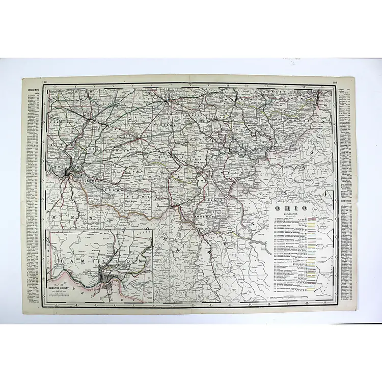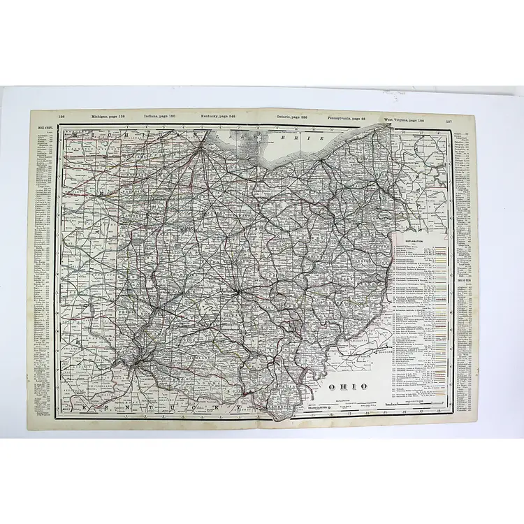 Railroad Map of Ohio circa 1900 Large 22 1/2 x 17 1/2 Full Color Lithograph #3